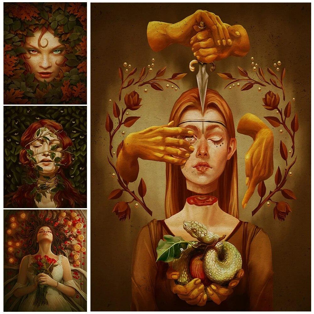 Ведьмы, связанные растениями, винтажная настенная живопись на холсте, элементы колдовства и темной магии, печать плакатов, домашний декор без рамки