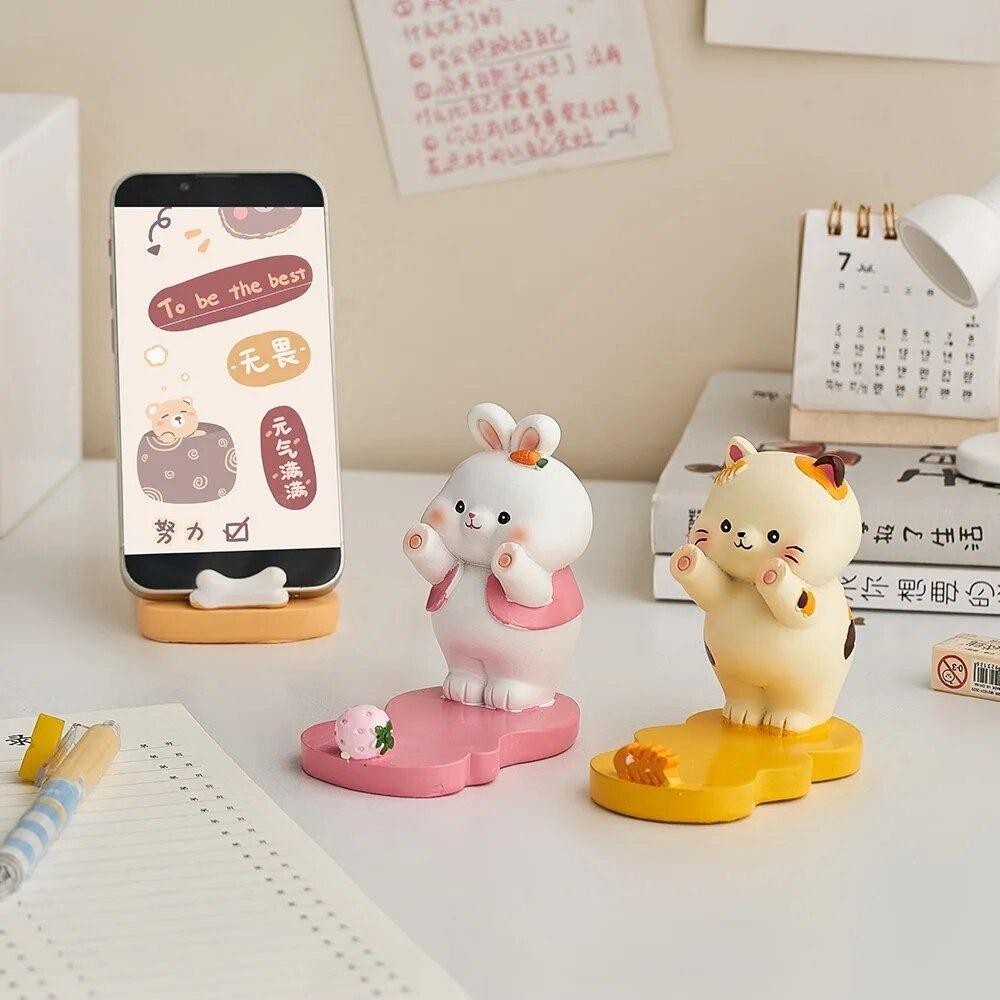 Resin Crafts Kittens Figurines Cartoon Animals Miniatures Small Animals Phone Holder Office — купить товар онлайн с бесплатной доставкой до всему миру!