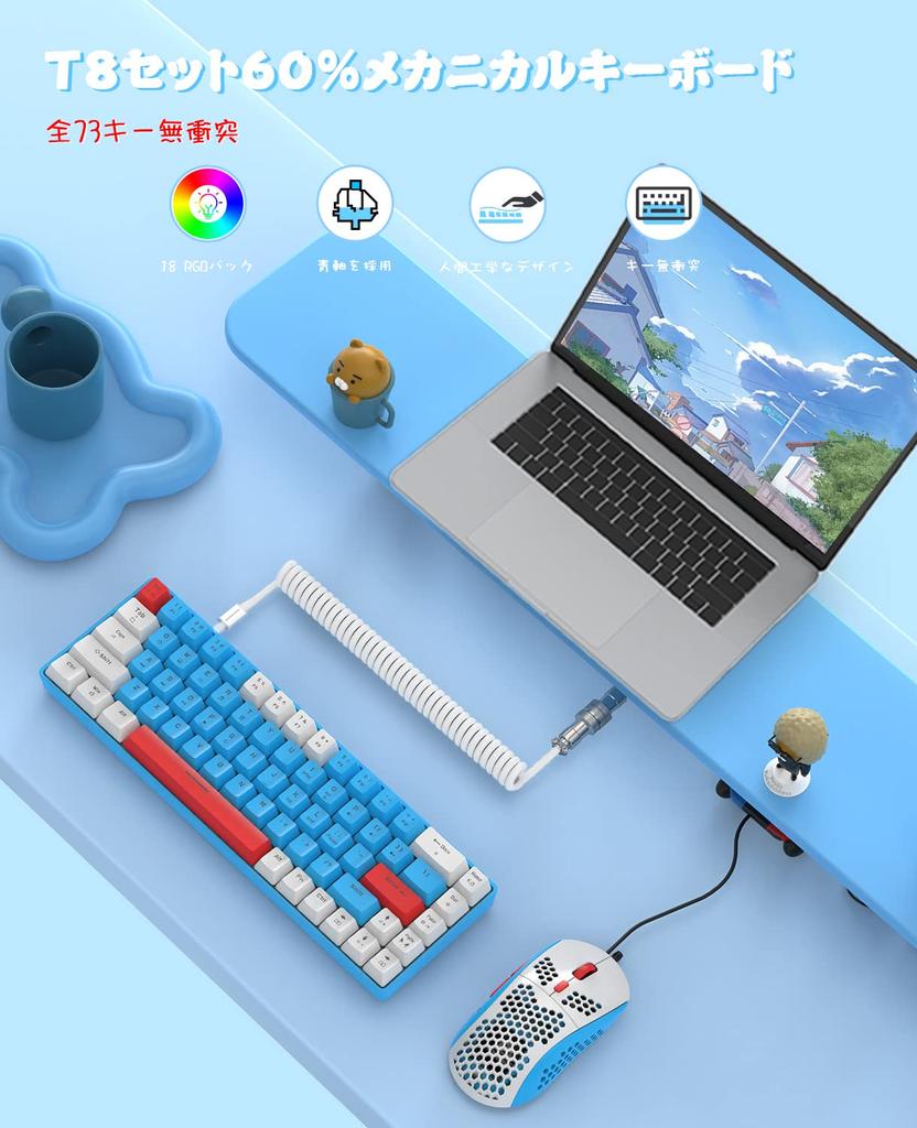 【Компактная клавиатура с 60% раскладкой】Раскладка из 68 клавиш имеет уникальные клавиши со стрелками, что является наиболее совершенным и практичным размером клавиатуры 60%. 60% клавиатура обладает 100% стандартной функциональностью клавиатуры и экономит больше места на рабочем столе. Подходит для бизнеса, путешествий, игр, офиса и домашнего использования.. Полные клавиши для предотвращения фантомных нажатий, эргономичный дизайн со ступенчатыми колпачками. 【Компактная клавиатура с 60% раскладкой】Раскладка из 68 клавиш имеет уникальные клавиши со стрелками, что является наиболее совершенным и практичным размером клавиатуры 60%. 60% клавиатура обладает 100% стандартной функциональностью клавиатуры и экономит больше места на рабочем столе. Подходит для бизнеса, путешествий, игр, офиса и домашнего использования.. Полный набор клавиш для предотвращения фантомных нажатий, эргономичный дизайн со ступенчатыми колпачками.