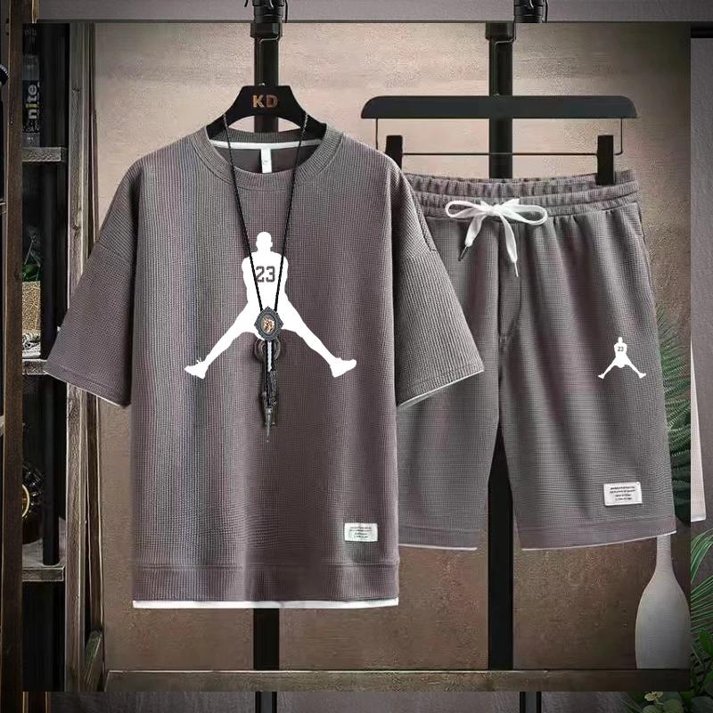 2025 Летний модный мужской вафельный повседневный комплект из футболки и шорт для баскетбола, легкой атлетики, дышащий, быстросохнущий, комплект из 2 предметов