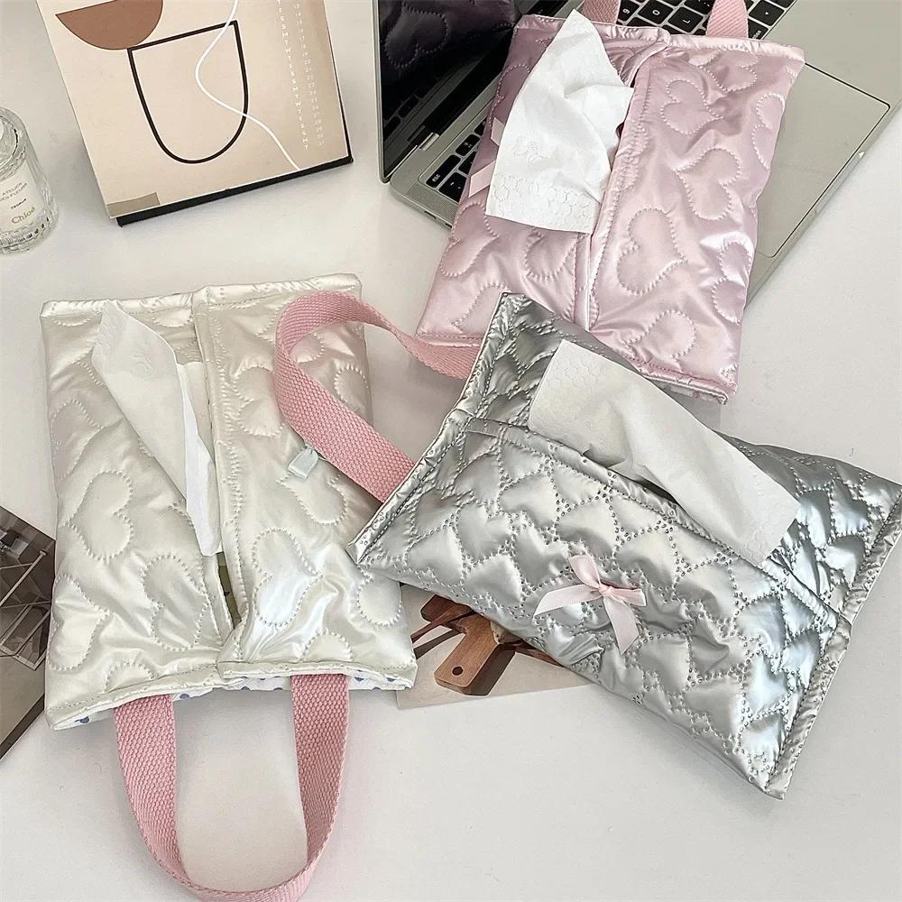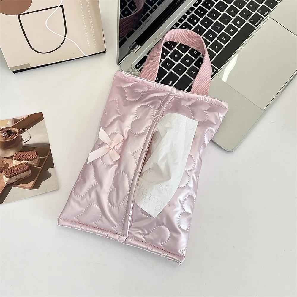 Чехол-книжка с серебристым бантом для салфеток, чехол для влажных салфеток, сумка для подвешивания в машину, портативный держатель для бумаги, съемный чехол для хранения салфеток, домашний декор