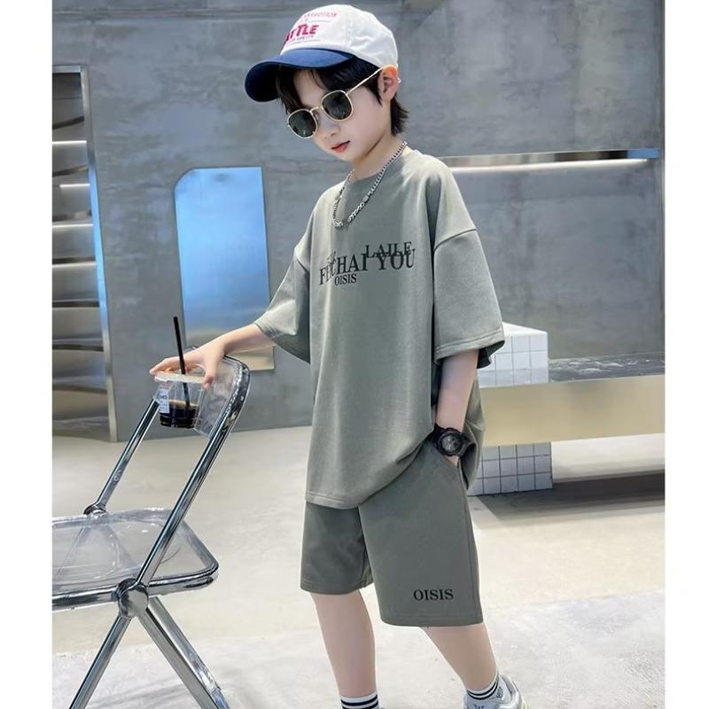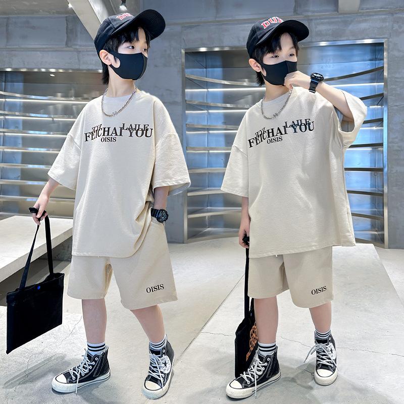 Летняя одежда для мальчиков от 9 до 12 лет, модная футболка с короткими рукавами и буквами, верх и короткий низ, комплект из 2 предметов, повседневный спортивный костюм для подростков