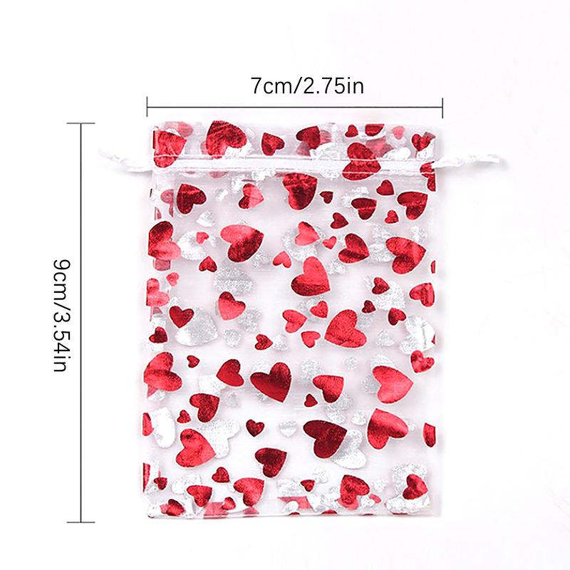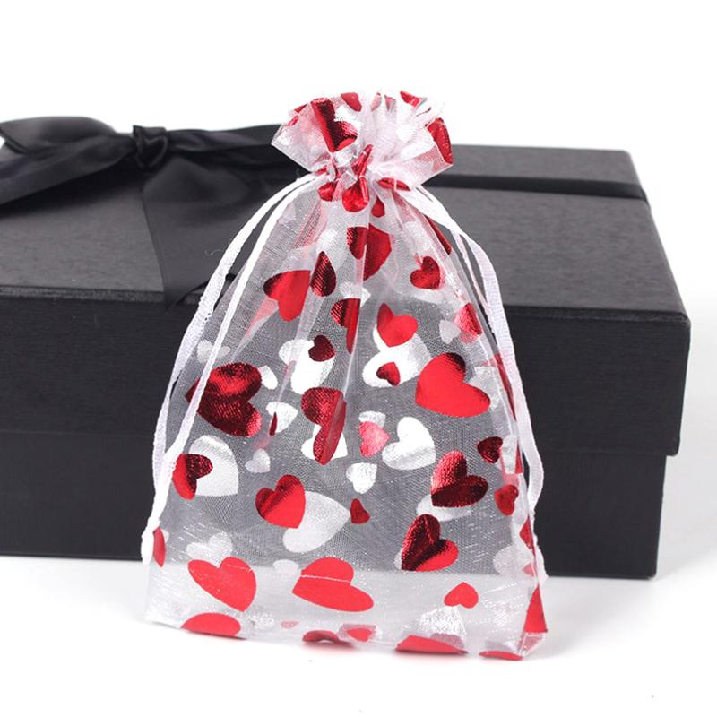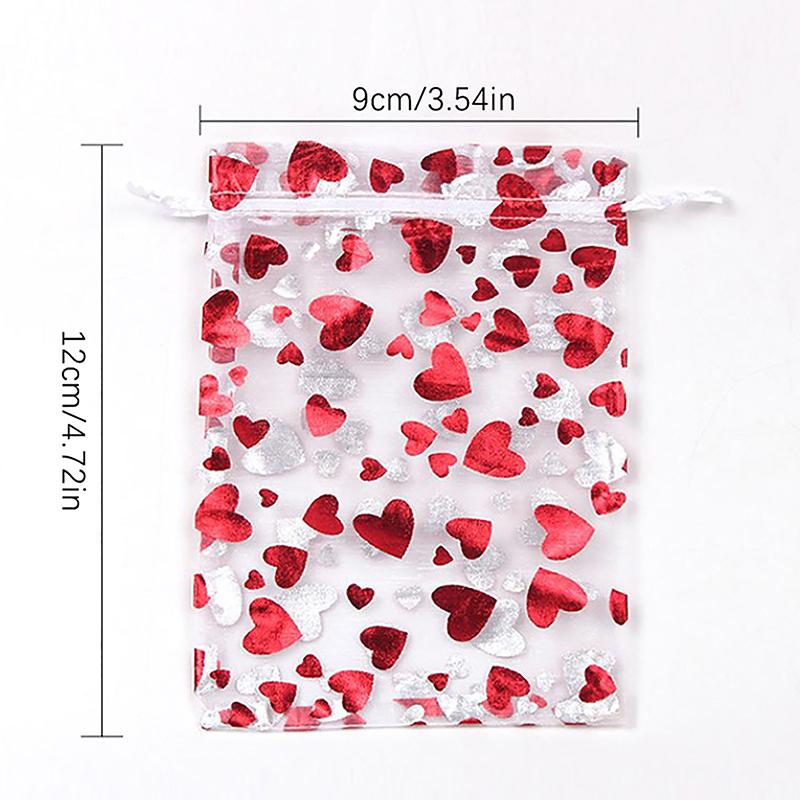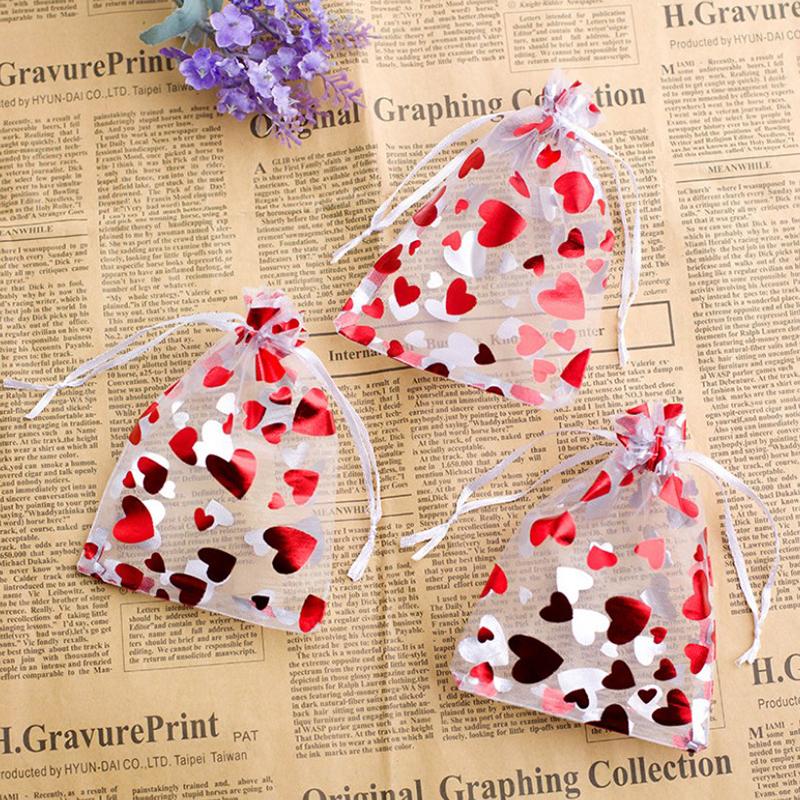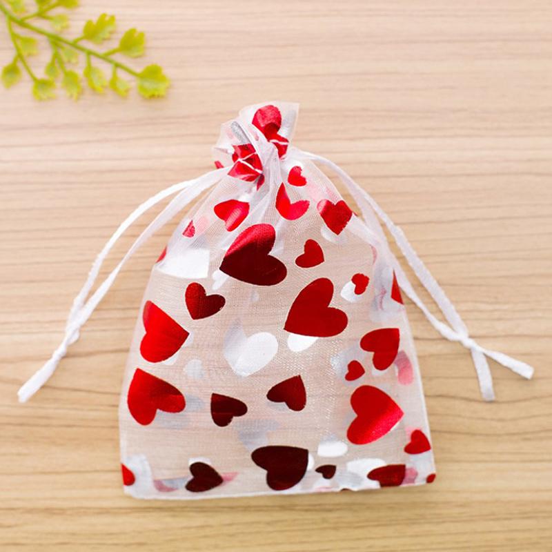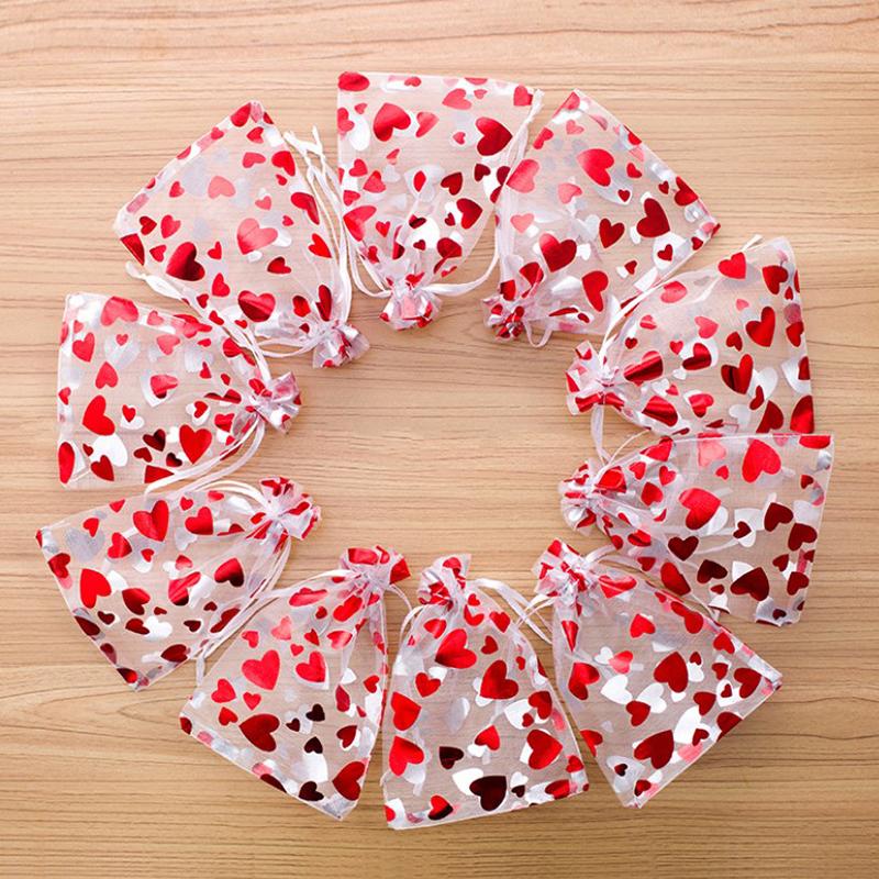 Красные сумки из органзы с сердцем любви, подарок для свадебной вечеринки, сумка на шнурке для конфет, сумки на Рождество, День Святого Валентина, ювелирные мешочки, дисплей