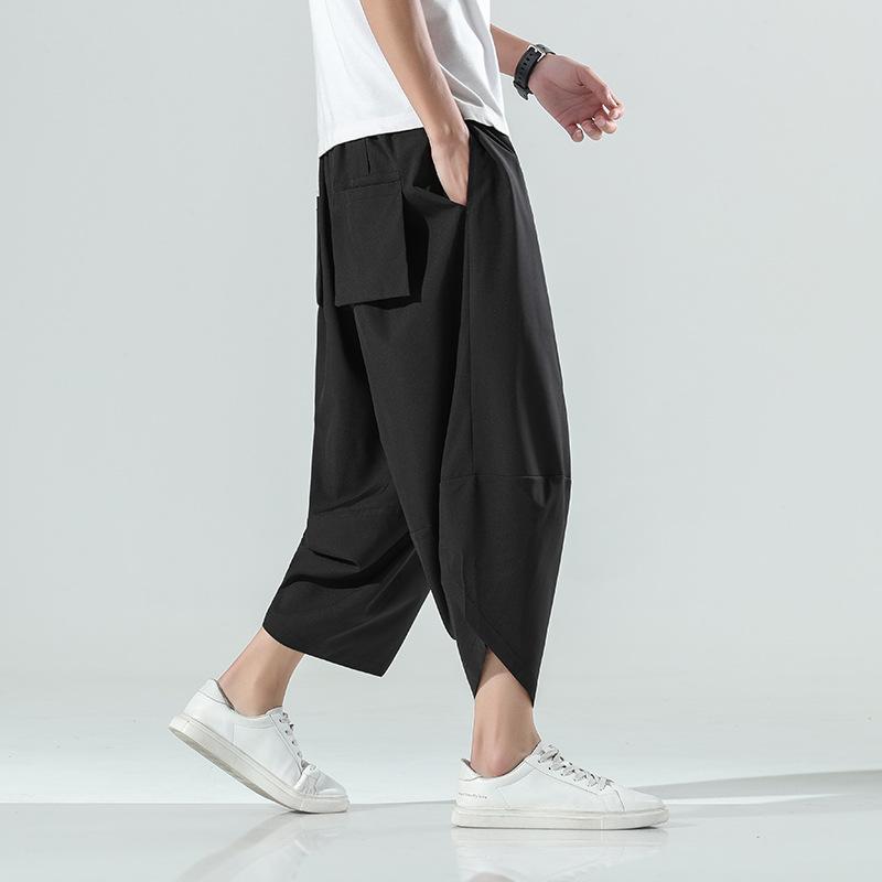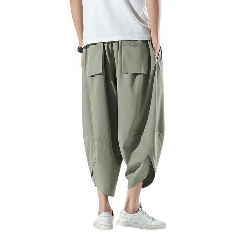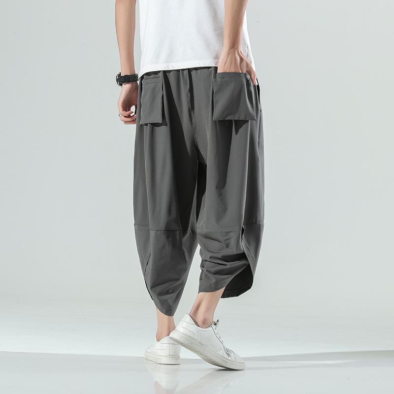 Летние тонкие мужские повседневные пляжные брюки из ледяного шелка больших размеров свободного кроя клеш гаремы брюки-фонарики