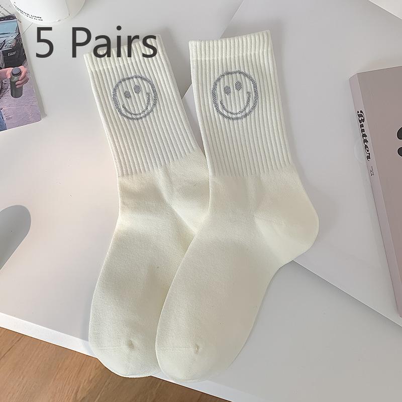 5 пар симпатичных весенних и осенних школьных носков с улыбающимися лицами для женщин