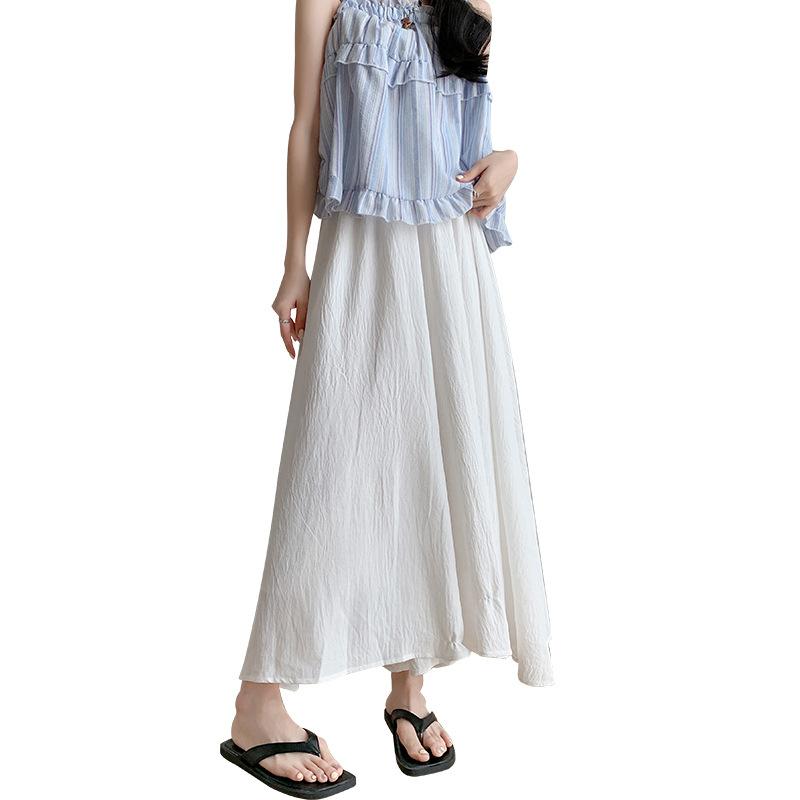 Белая юбка и брюки для женщин летом Тонкий ледяной шелк Маленькая струящаяся плиссированная юбка А-силуэта с высокой талией Свисающие широкие брюки
