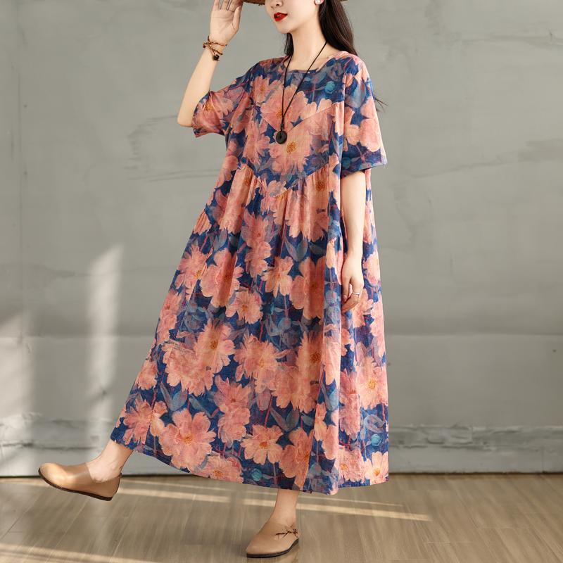 DIMANAF 2025 Летнее платье большого размера Женское повседневное винтажное длинное платье с цветочным принтом Свободное платье-рубашка Макси