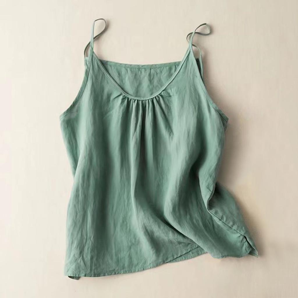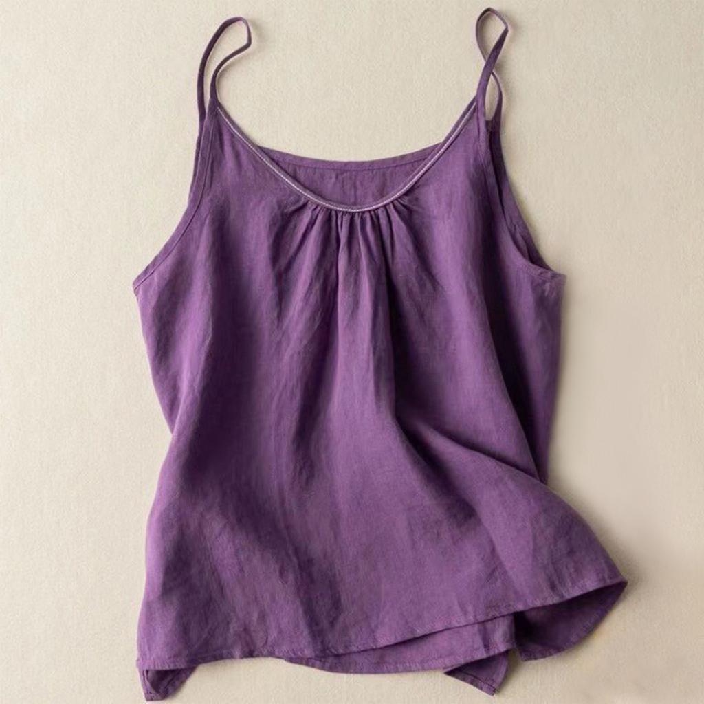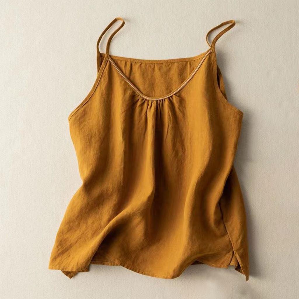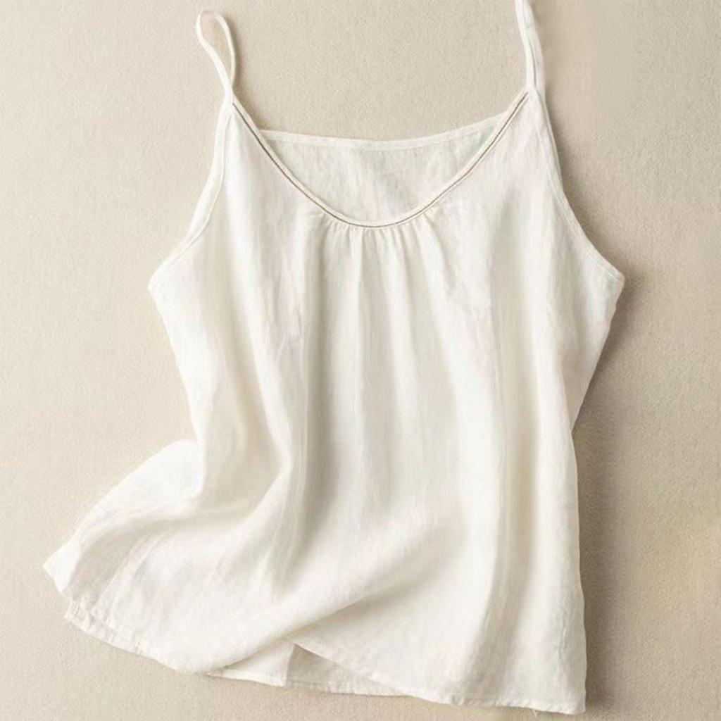 Женский топ-майка с V-образным вырезом и безрукавкой из хлопка и льна