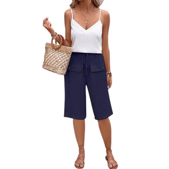 Ключевые слова: Женские повседневные шорты из смеси хлопка и льна, дышащая ткань, дизайн передних карманов, кулиска на талии, однотонные шорты, универсальные варианты сочетания, удобная посадка, подходят для уличной одежды, клубов и повседневной носки.