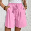 Женские модные однотонные повседневные пляжные брюки с эластичной талией и завязками на шнурке, повседневные домашние шорты с карманами