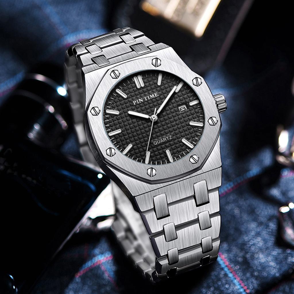 PINTIME Мужские часы класса люкс, автоматические часы с датой, водонепроницаемые, светящиеся, мужские наручные часы, кварцевые, из нержавеющей стали, спортивные часы