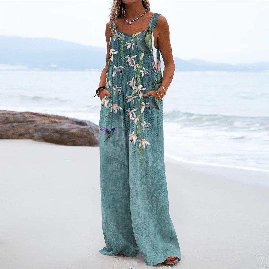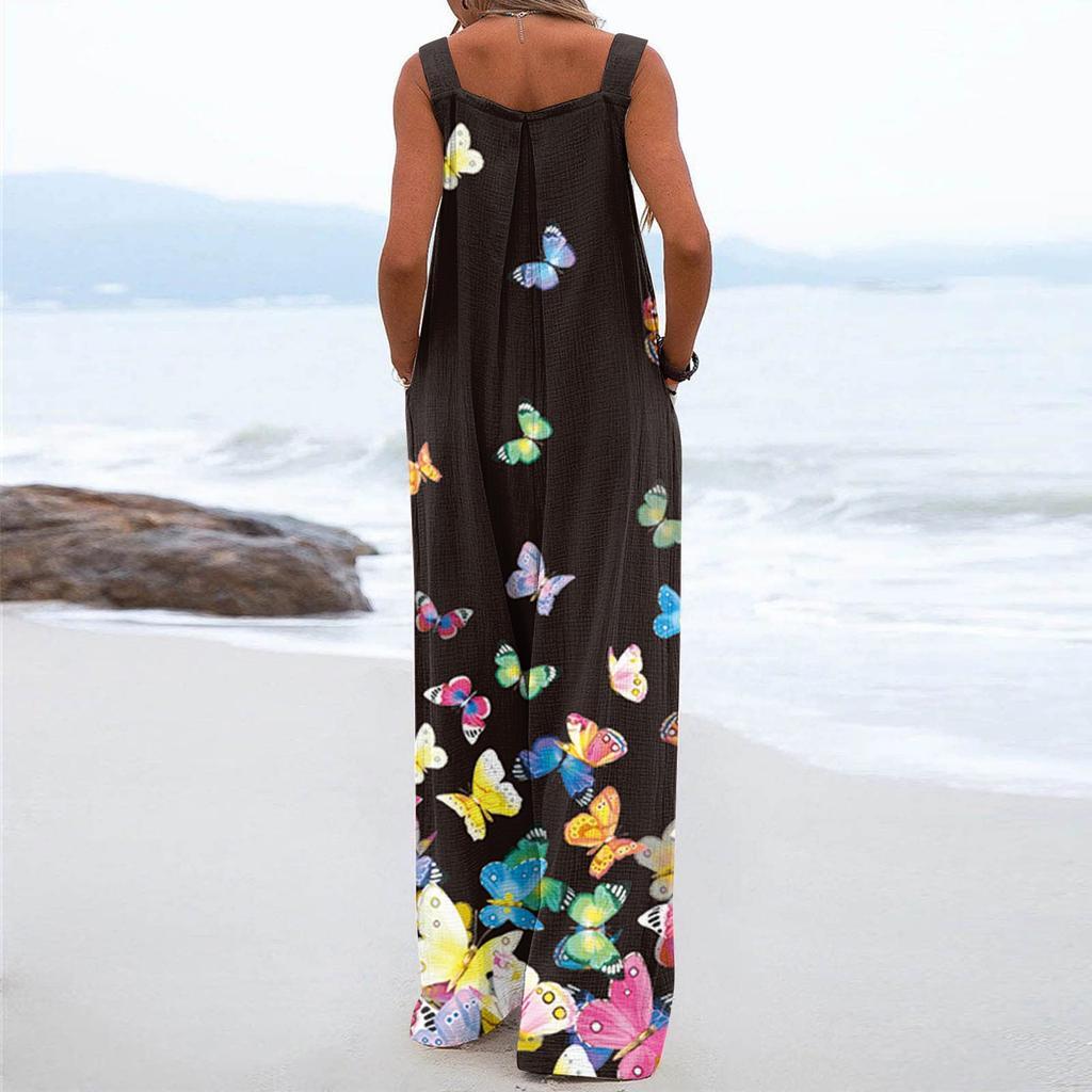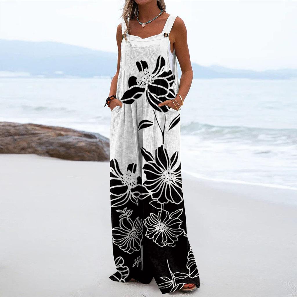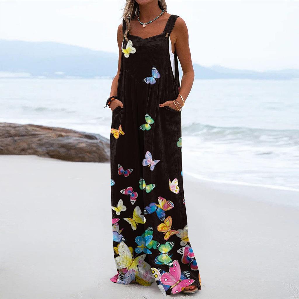 Удачи вам с любимыми покупкамиЖенский комбинезон повседневный свободный без рукавов с регулируемыми лямками и широкими штанинами с карманами
