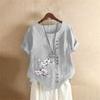 Хлопковая и льняная женская одежда Лето и осень Ретро Повседневная свободная хлопковая и льняная футболка с коротким рукавом Женская одежда больших размеров