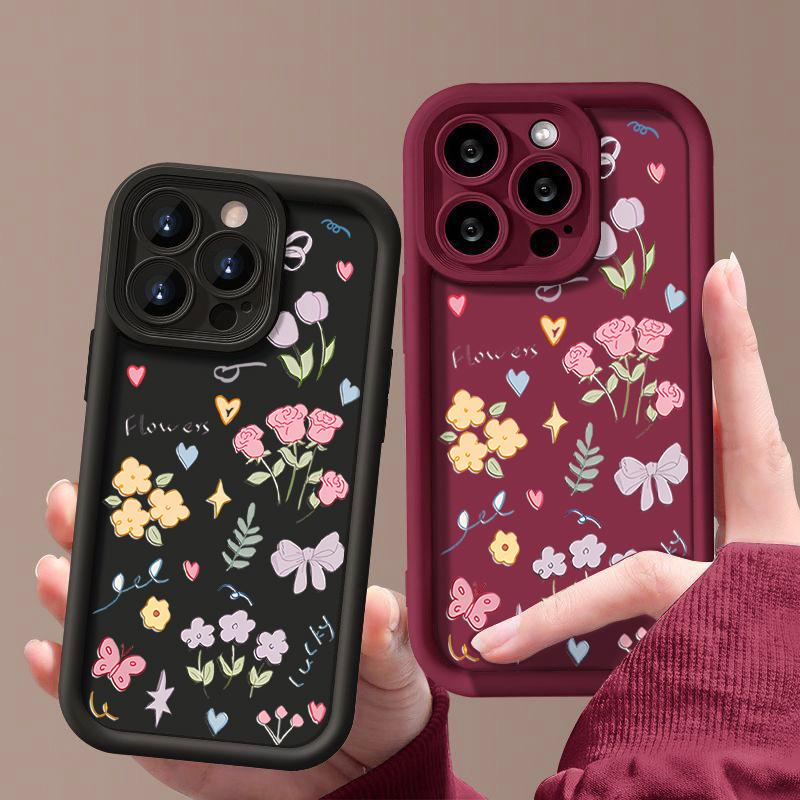 Ударопрочный чехол для телефона с мультяшным цветочным узором для iPhone 16 Pro Max 15 Pro 14 13 12 11 XS XR 8 7 силиконовый матовый TPU мягкий противоударный бампер — купить товар онлайн с бесплатной доставкой по всему миру!