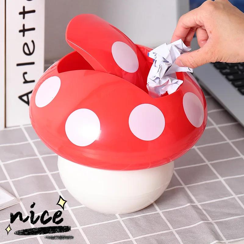 1 шт. Мини-мусорное ведро в форме гриба для рабочего стола, ведро для хранения на офисном столе для школьников с крышкой, симпатичная креативная маленькая мусорная корзина