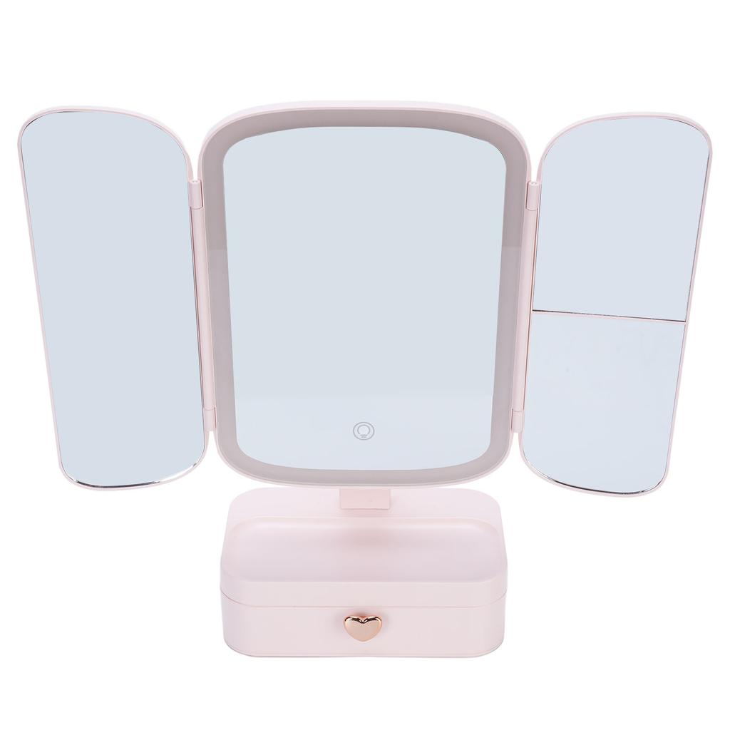 Настольное зеркало для макияжа с подсветкой и органайзером, 3 цветовых температуры, затемнение, USB-зарядка, светодиодная лампа