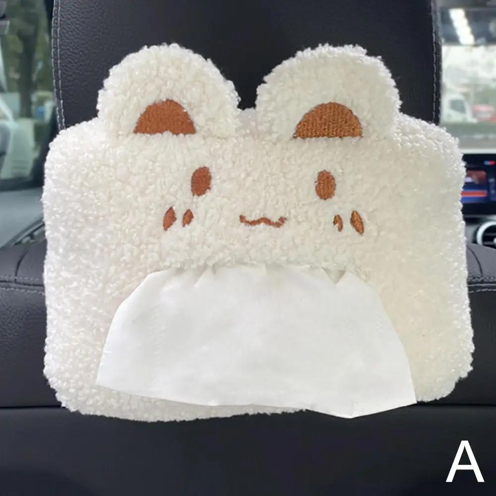 Универсальная мультяшная коробка для салфеток в машину, плюшевые животные, чехол для хранения салфеток на спинку сиденья, аксессуары для украшения салона автомобиля, папиросная бумага