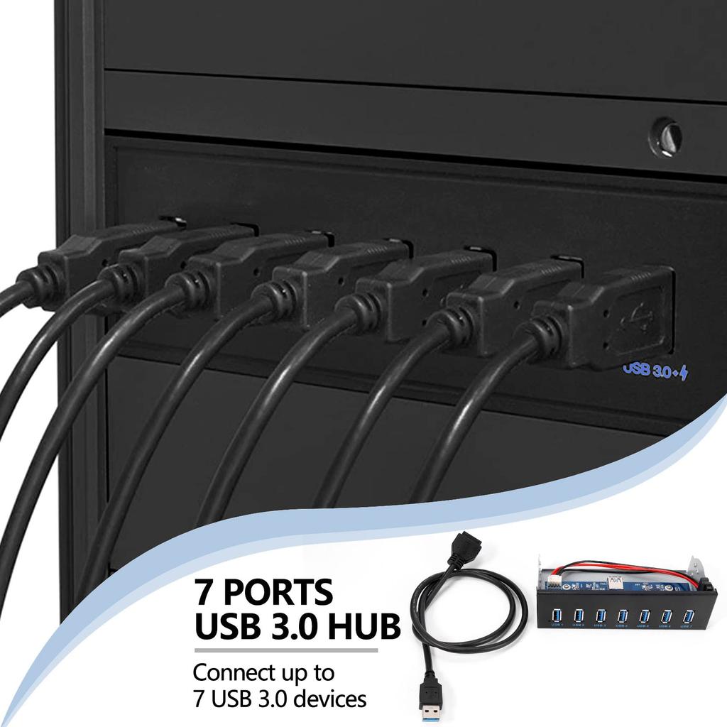 Buerjia 7-портовый USB-хаб 5 Гбит/с Отсек для 3,5-дюймового накопителя Компьютерный корпус CD-ROM Передняя панель для USB-кабеля (папа) Двойной чип 1 разъем 19-контактный на 16 разъемов 3.0 5,25 CD-ROM + 3.0