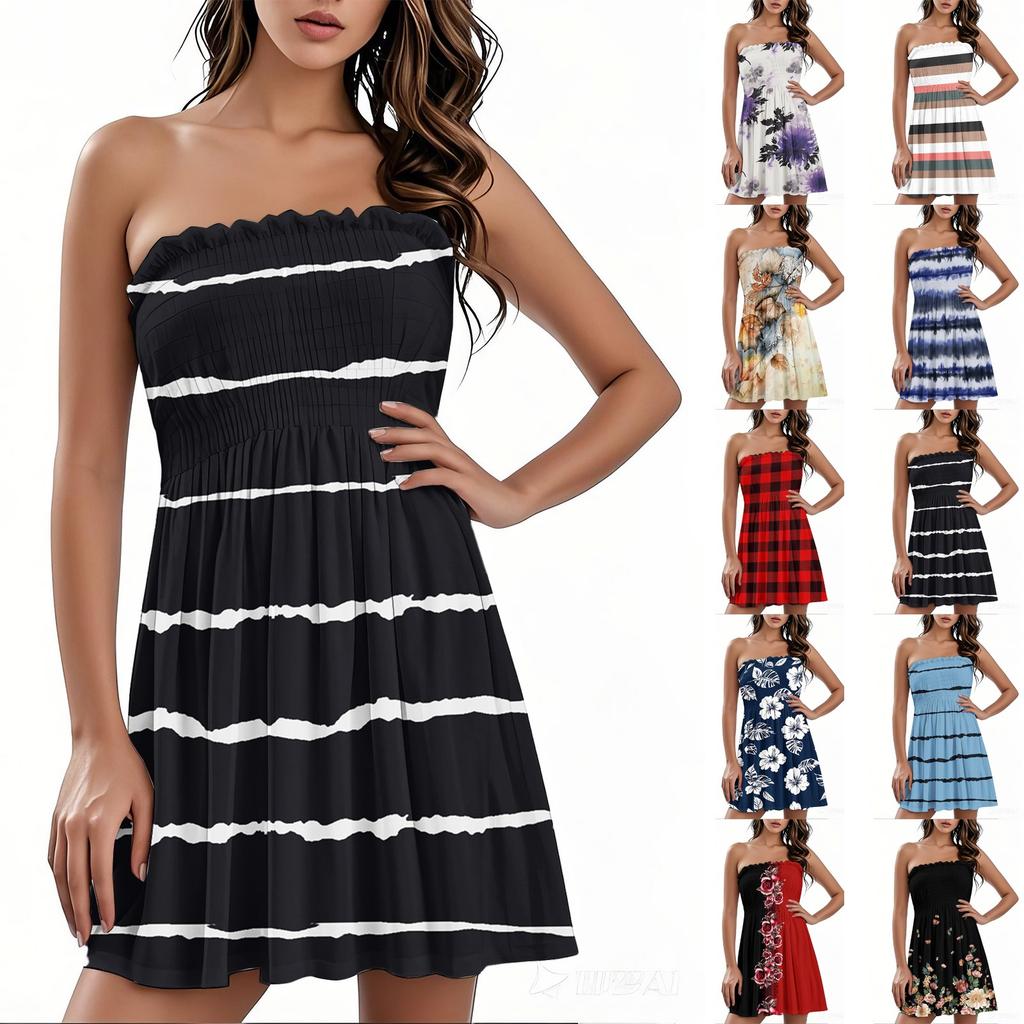 Модное женское повседневное платье-бандо с цветочным принтом без рукавов — купить товар онлайн с бесплатной доставкой до всему миру!