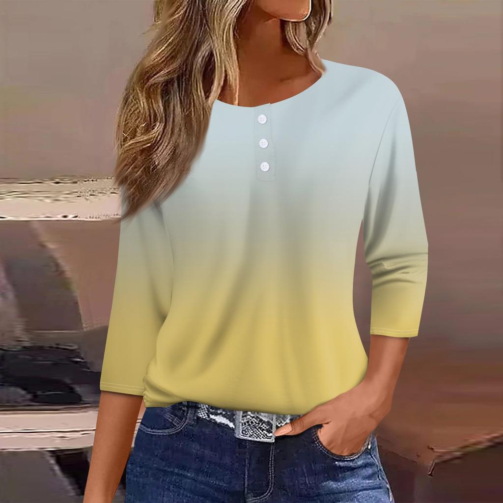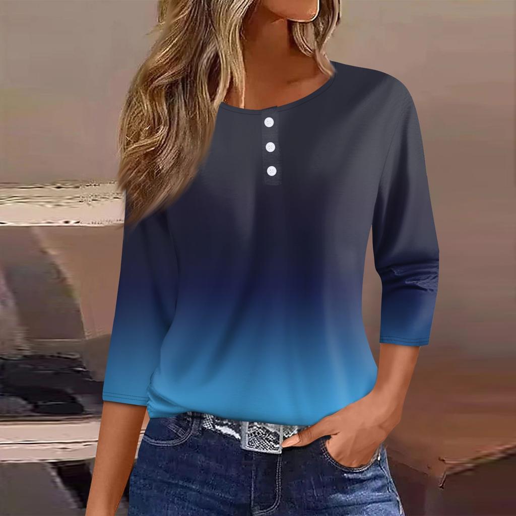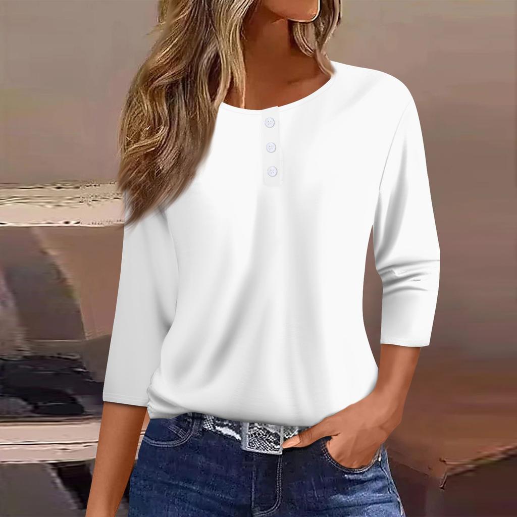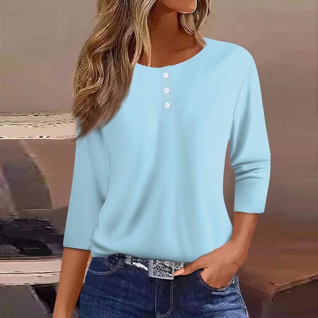 Жен. Футболка Футболка с принтом Пуговицы Рукав 3/4 Повседневные Выходные Мода Классический Круглый вырез Обычный Топ