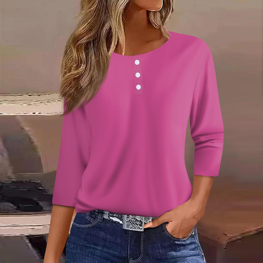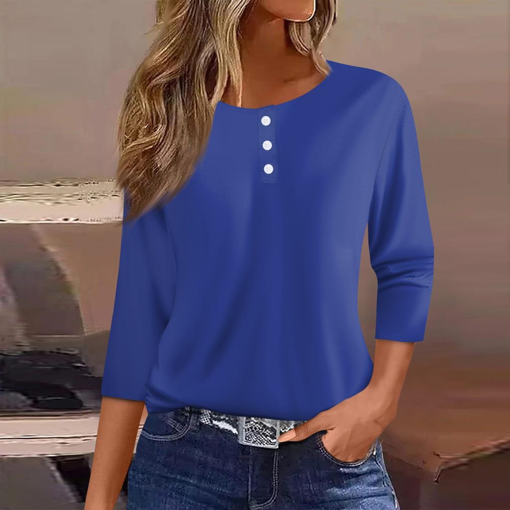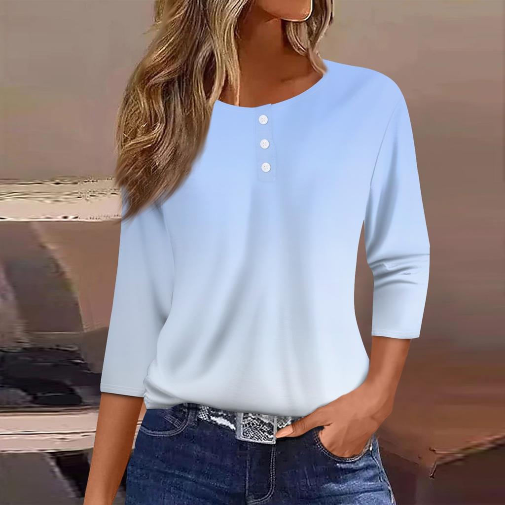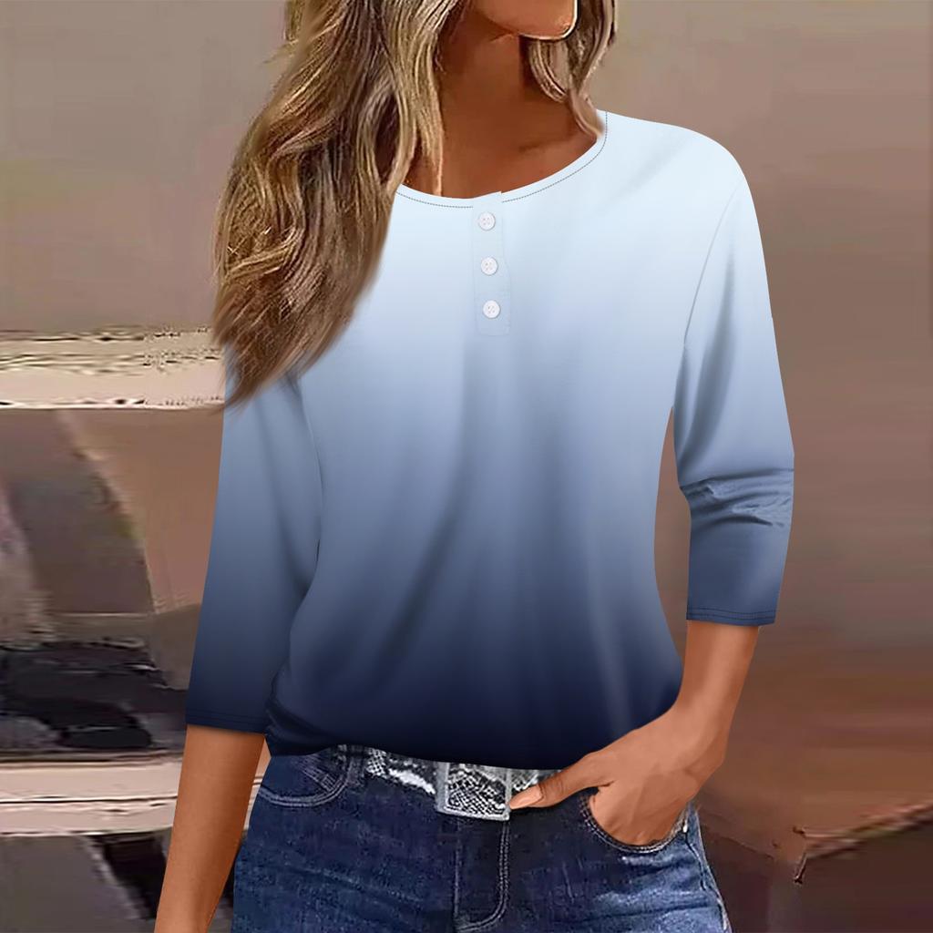 Жен. Футболка Футболка с принтом Пуговицы Рукав 3/4 Повседневные Выходные Мода Классический Круглый вырез Обычный Топ