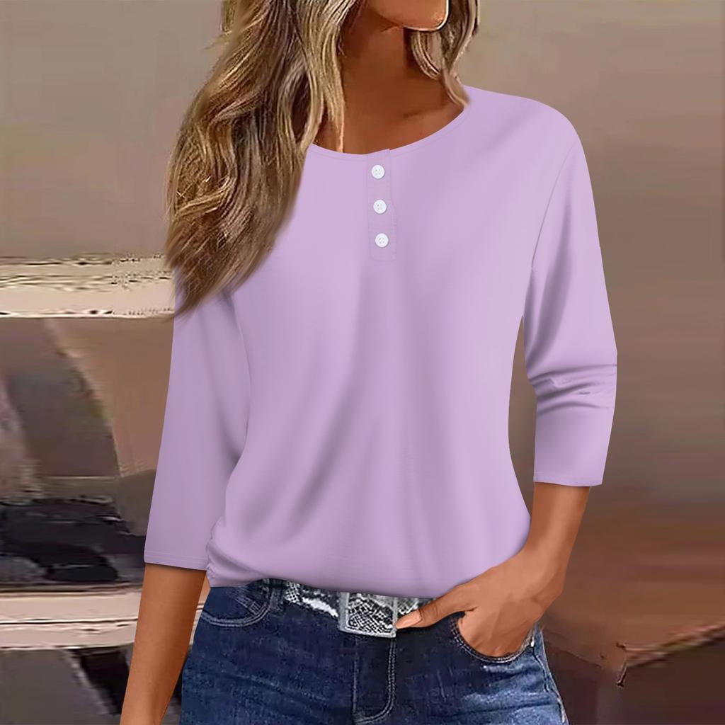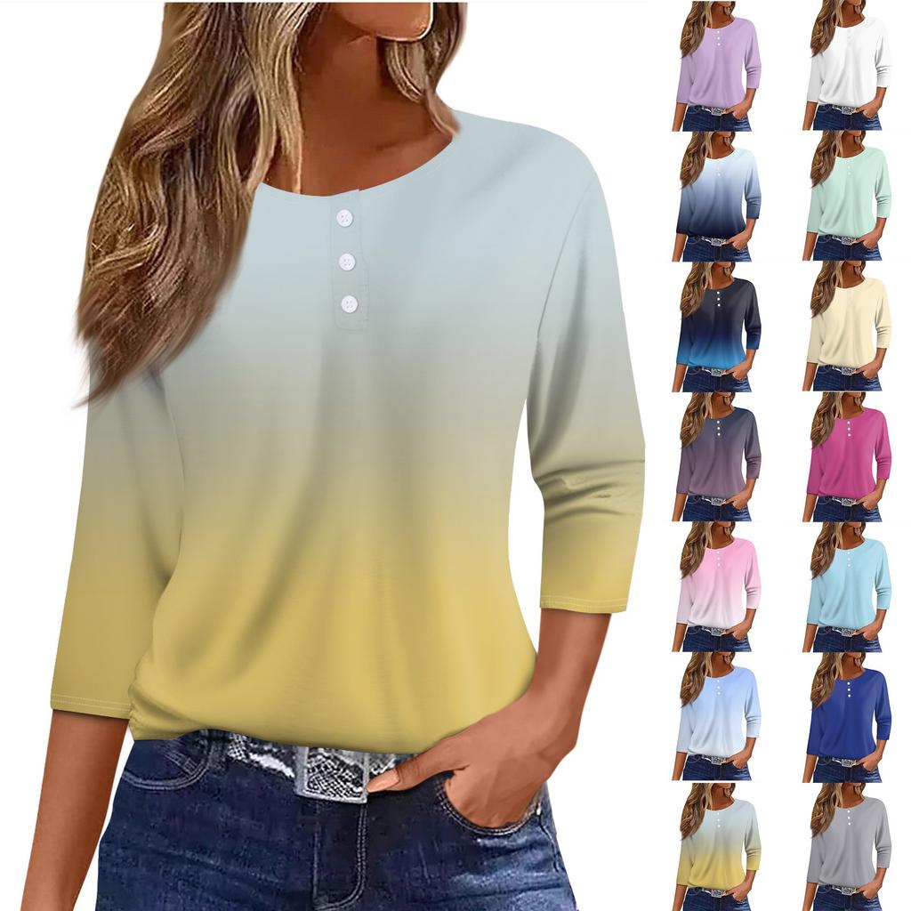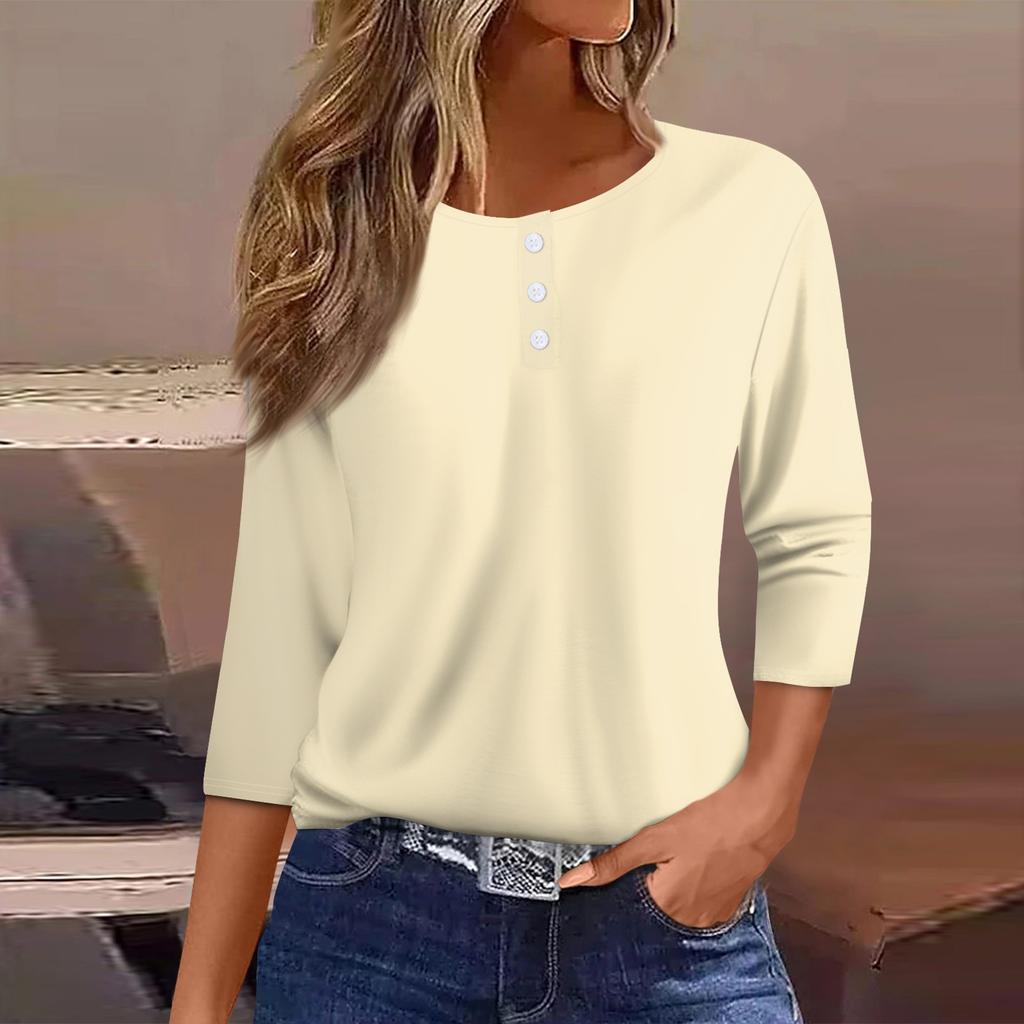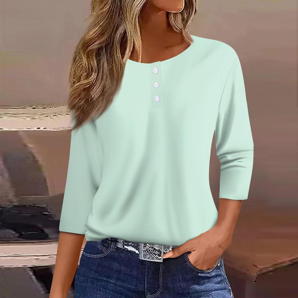 Жен. Футболка Футболка с принтом Пуговицы Рукав 3/4 Повседневные Выходные Мода Классический Круглый вырез Обычный Топ