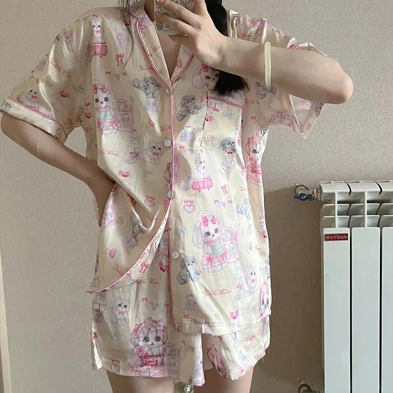 Милая кавайная женская пижама с маленьким котом и собакой Y2k Япония, корейский мультфильм, милая ночная рубашка Harajuku 2024, новые летние классные шезлонги