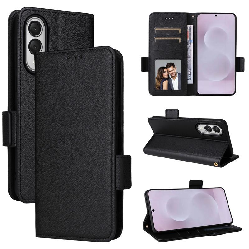 For Samsung Galaxy S25 Edge Side Buckle Lychee Pattern Wallet Leather Cover for Galaxy S25 Edge Purse Magnetic Phone Bags