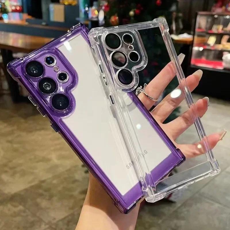 Роскошный чехол для телефона с защитой объектива для Samsung Galaxy S24 S23 S22 Ultra S24 Plus S23 FE 5G, бампер, жесткая акриловая прозрачная крышка
