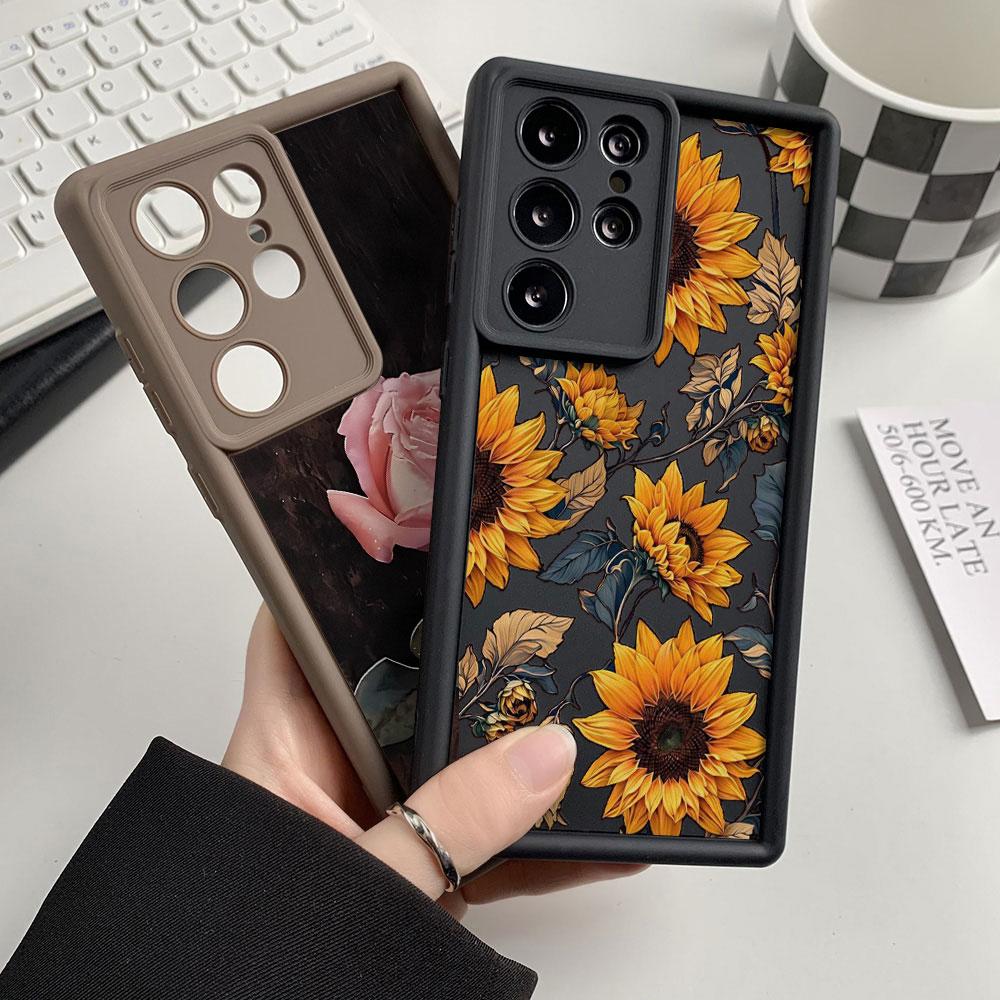 Мягкий ТПУ чехол для Samsung A55 5G S25 Ultra S24 FE A54 A16 A15 A53 A35 A34 A14 A13 A06 A05 A05s A33 A25 S23 S22 Plus Цветочный чехол