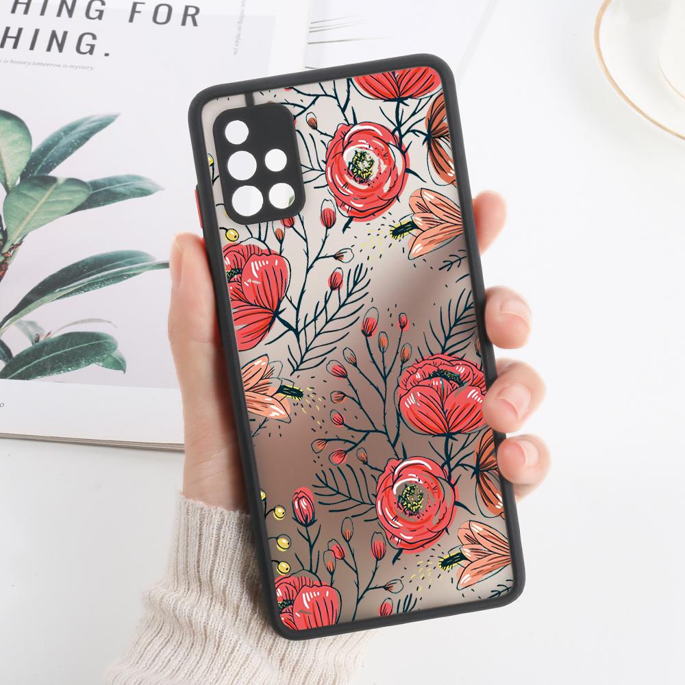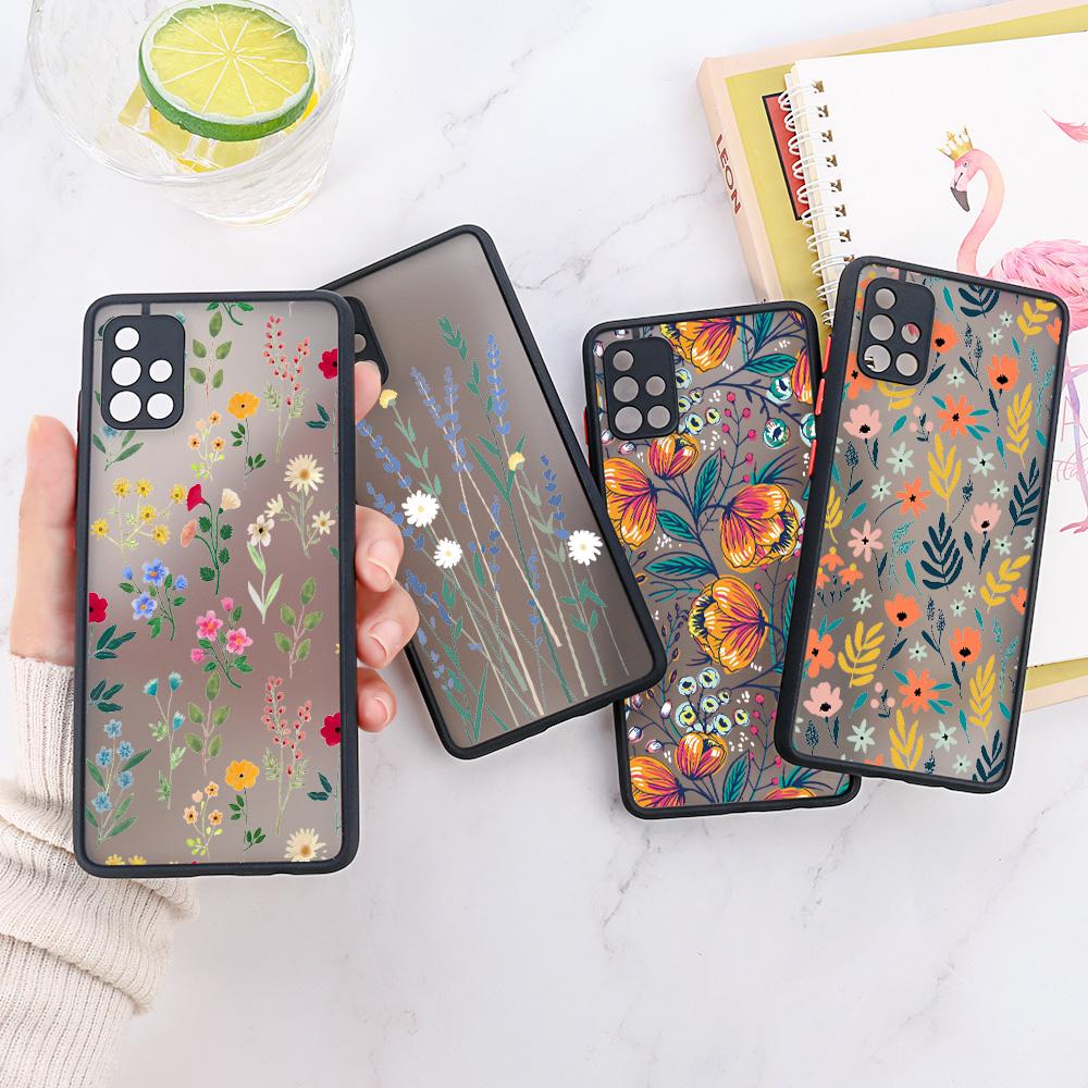Матовый чехол с цветами для Samsung A05 Funda Galaxy A55 5 A53 A52 A35A34 A33 A14 A13 A51 A12 A22 A23 A32 A51 A72 A73 M31 Твердые чехлы