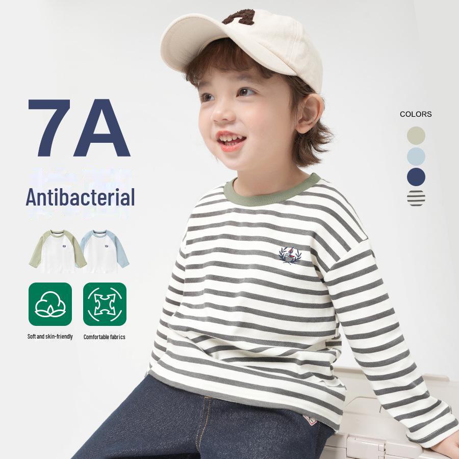 Эта футболка с длинными рукавами для мальчиков изготовлена из мягкого, дышащего хлопка и имеет стильный полосатый рисунок.. Антибактериальные свойства обеспечивают свежесть и комфорт в течение всего дня, что делает его идеальным для активных игр или повседневных прогулок.. Прочный материал обеспечивает длительный срок службы, а классический крой и удобная ткань позволят вашему ребенку выглядеть и чувствовать себя великолепно.