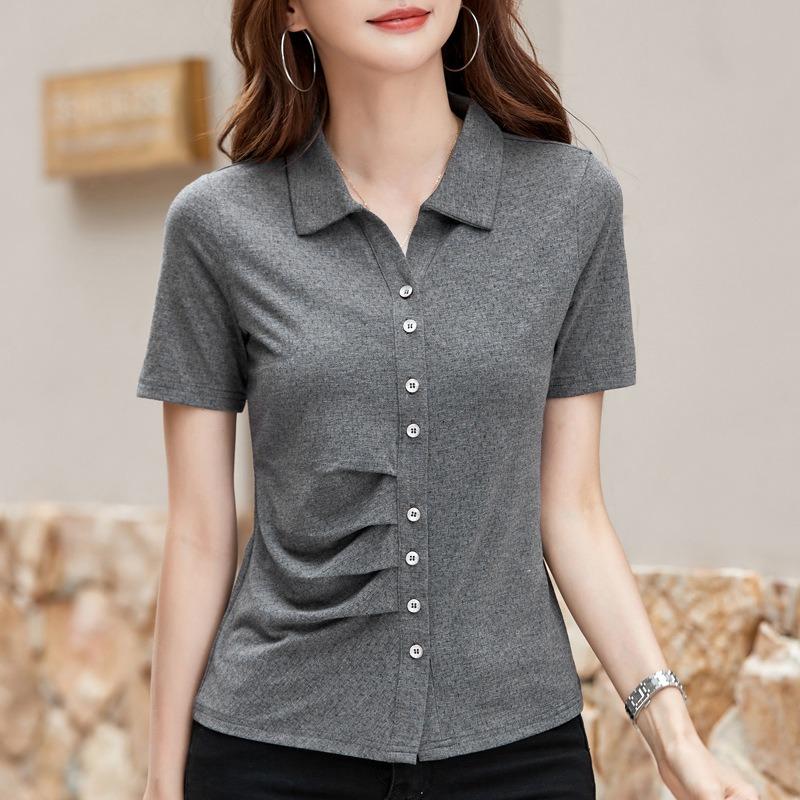 Женская летняя новая футболка с короткими рукавами и лацканами, тонкая повседневная рубашка-поло с короткими рукавами