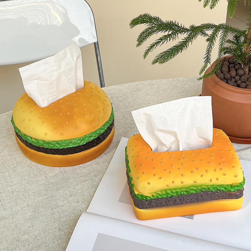 Вкусная коробка для салфеток в форме гамбургера, держатель для салфеток из смолы в виде гамбургера, бумажная коробка, контейнер для хранения украшений для домашнего обеденного стола