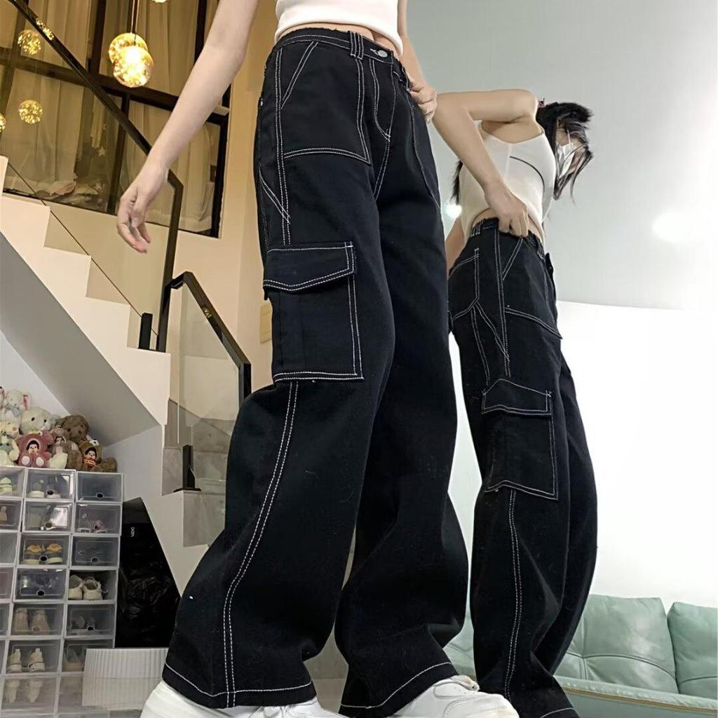 Женские джинсы прямого кроя с высокой посадкой на весну/зиму 2024 - Приталенные, широкие джинсовые комбинезоны