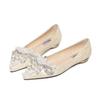 Новые мягкие туфли Crown Pearl Flats Свадебные туфли с острым носком Женские мокасины для платья Низкий каблук Pearl Женская мода Роскошь Большой размер 43