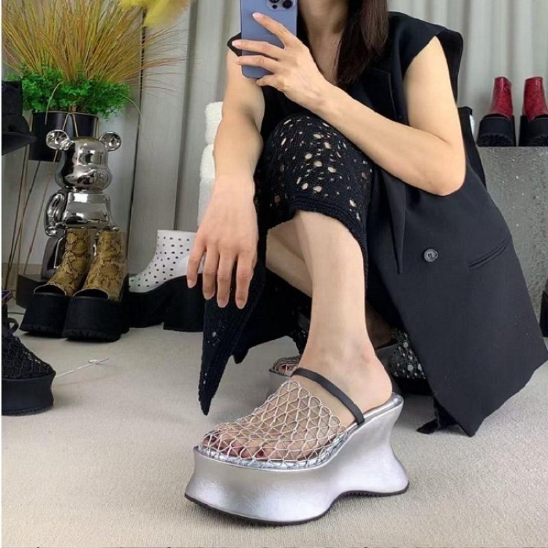 2025 Летние тапочки-сумки с одним ремешком, толстые сандалии с сетчатым принтом, удобные тапочки, женская обувь