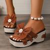Модные женские босоножки на толстой платформе с большим бантом, женские тапочки на танкетке с жемчужным цветком, женские летние шлепанцы с квадратным носком и толстой подошвой