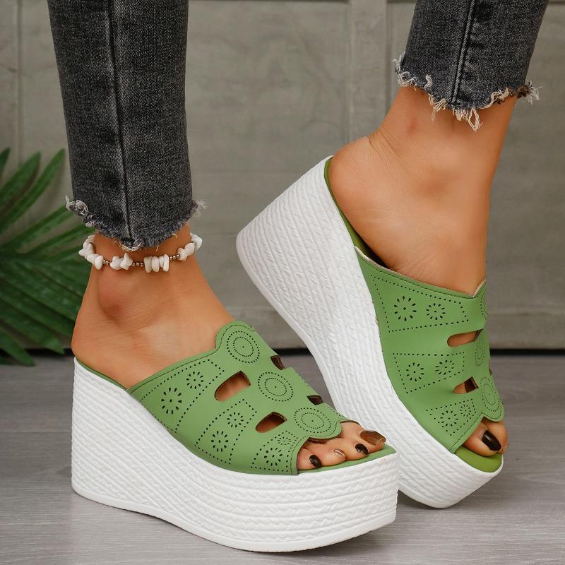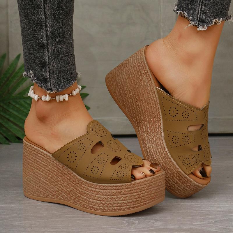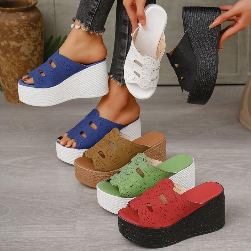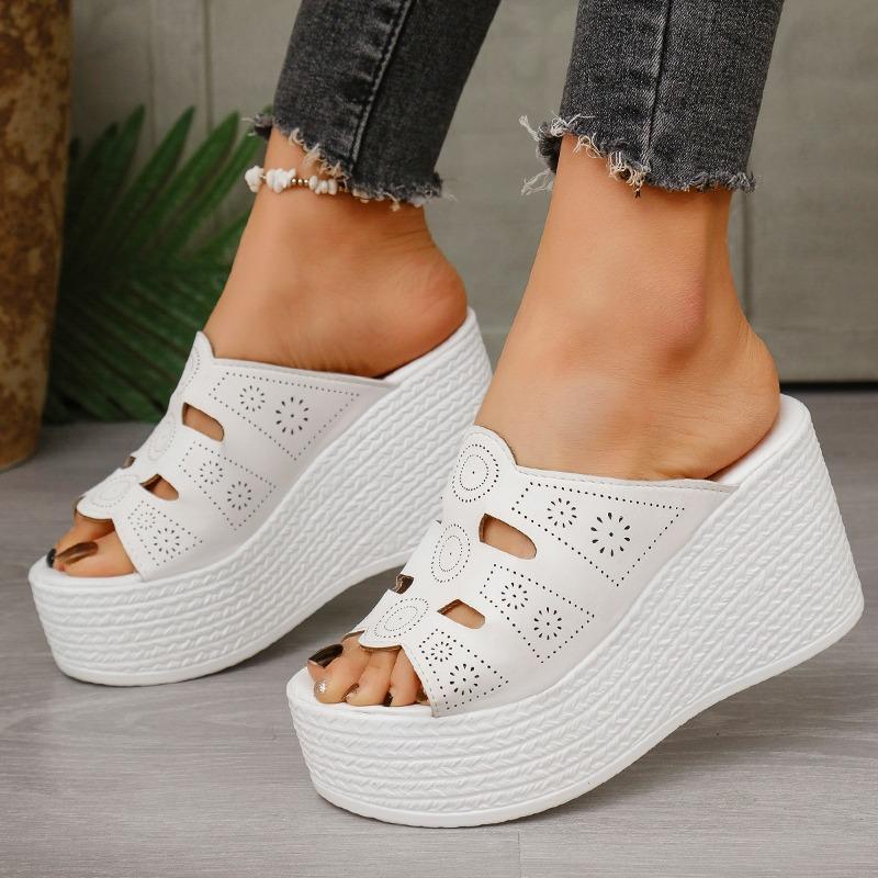 Сандалии женские супер высокие каблуки усиливающие новые летние тапочки с толстым дном и рыбьим ртом модные туфли-бублики женская обувь