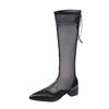 Летние женские сапоги 2025 года, новые сетчатые полые крутые сапоги, универсальные дышащие тонкие сапоги с толстой подошвой, высокие до бедра