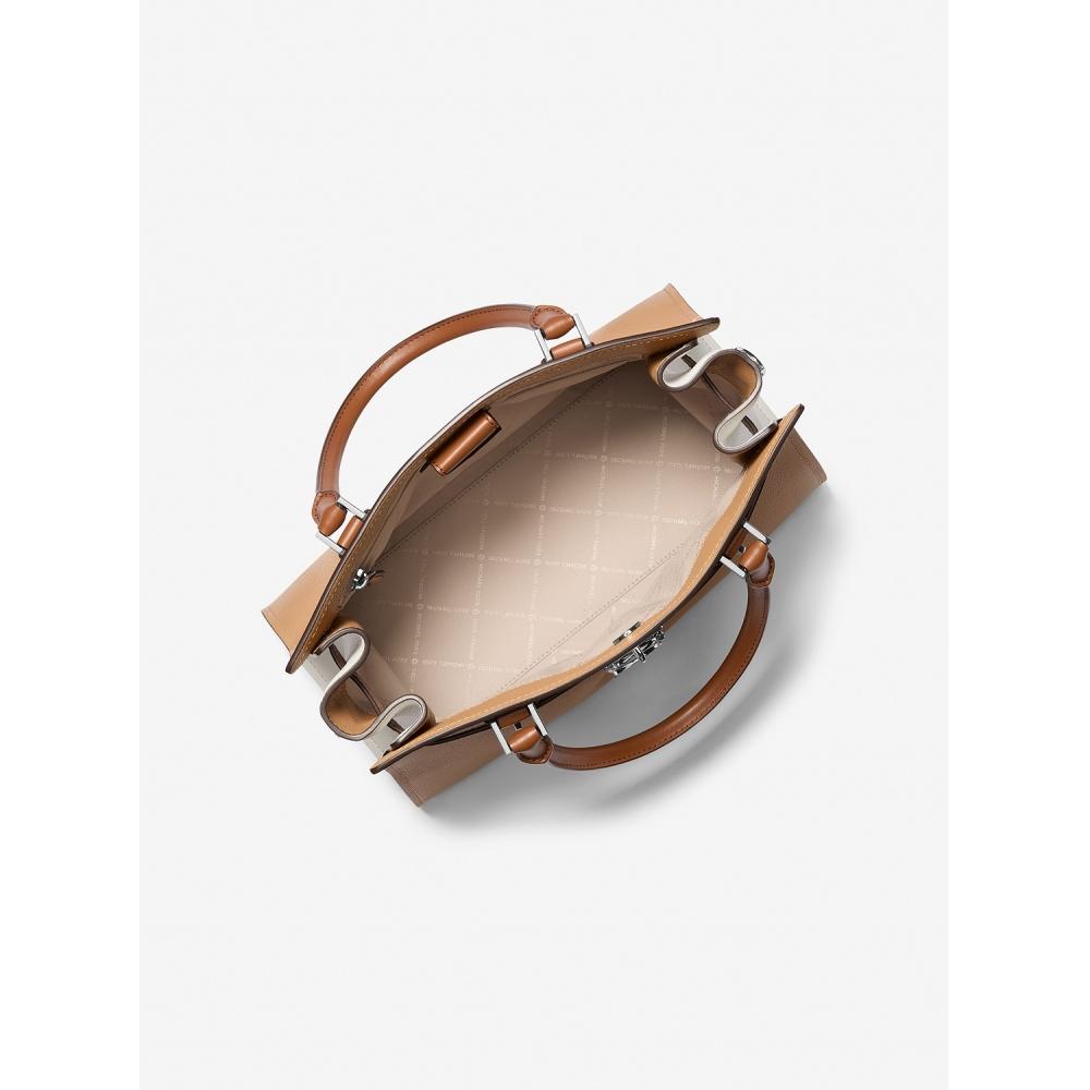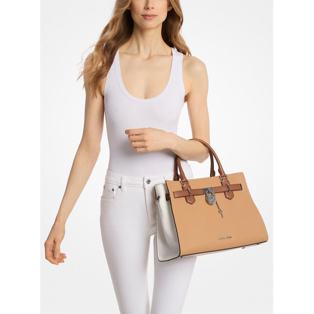 Michael Kors Hamilton Color Block Leather Satchel Medium 35t5shms2l3470 Peanut Multi