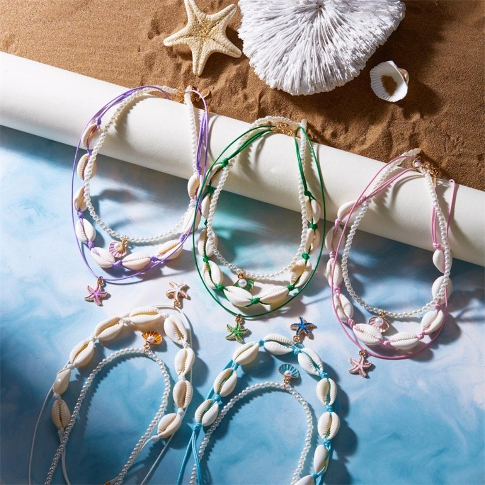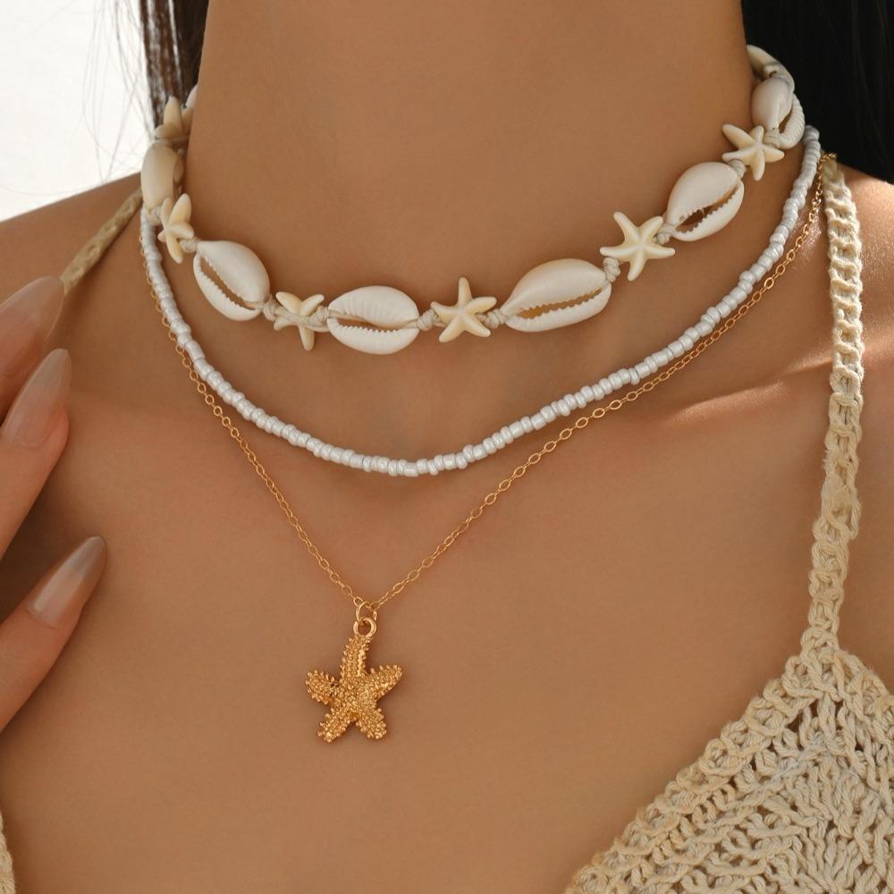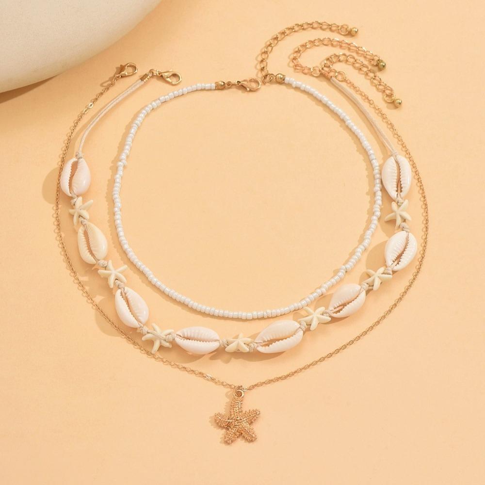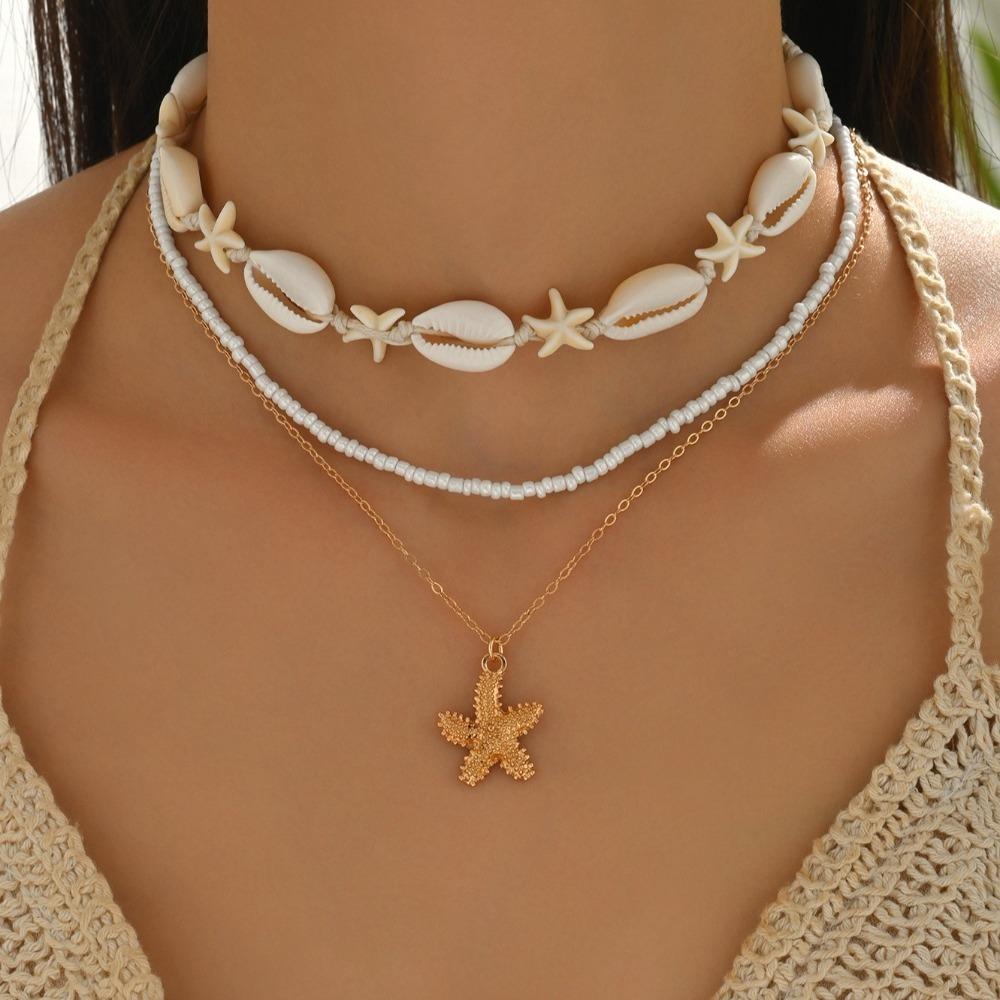 3 шт./компл. Многослойное ожерелье с подвеской в виде ракушки из морской звезды, бусины из ракушки, женское ожерелье