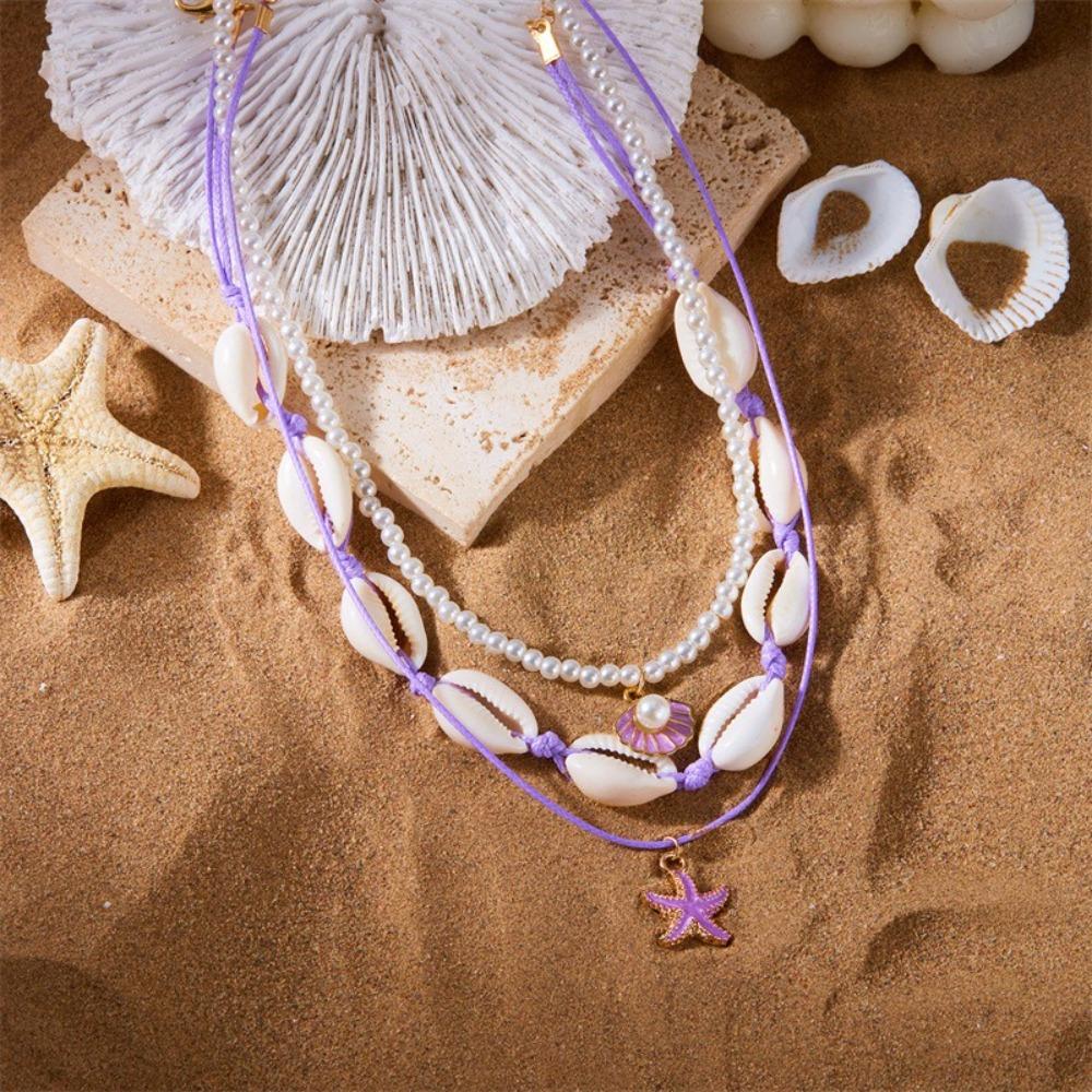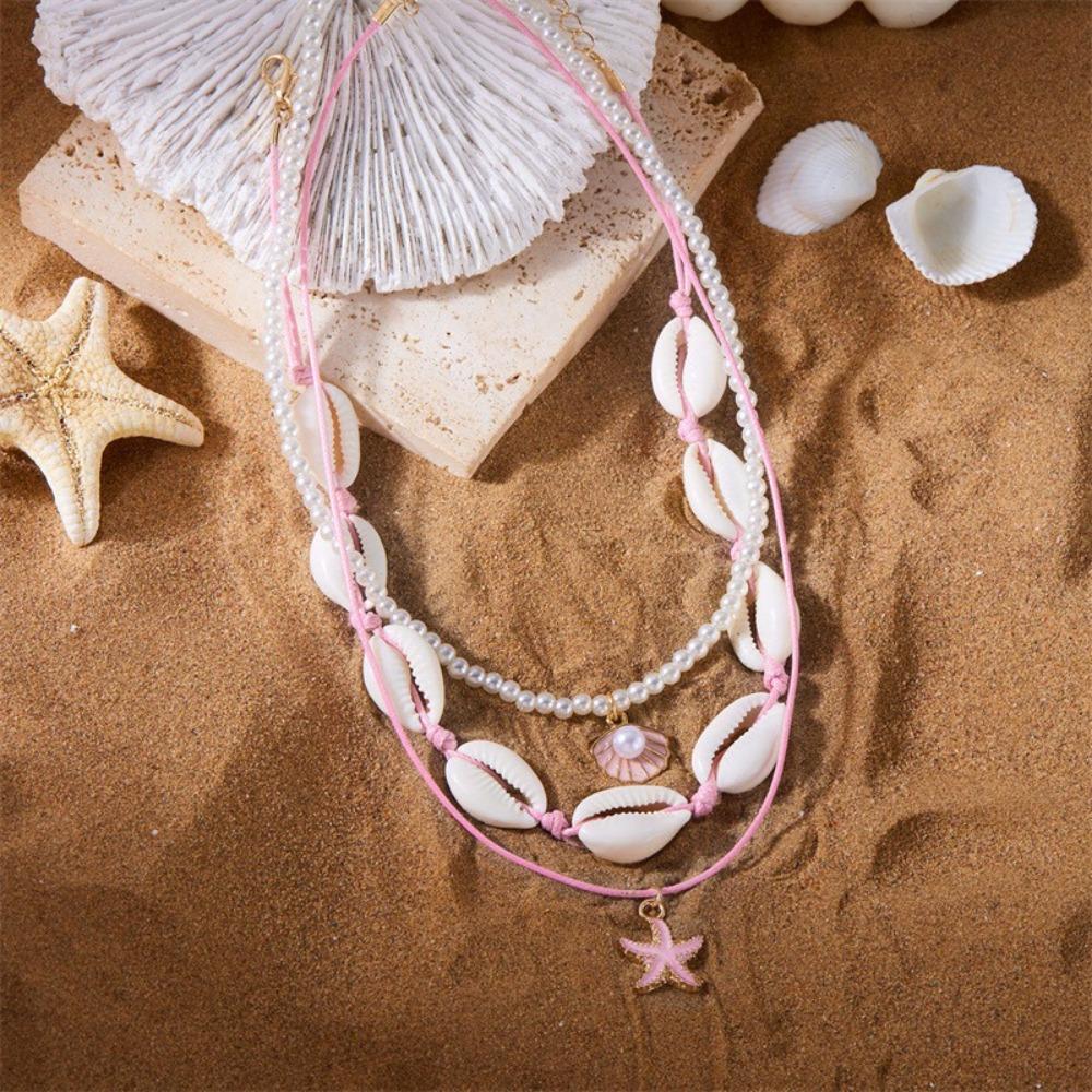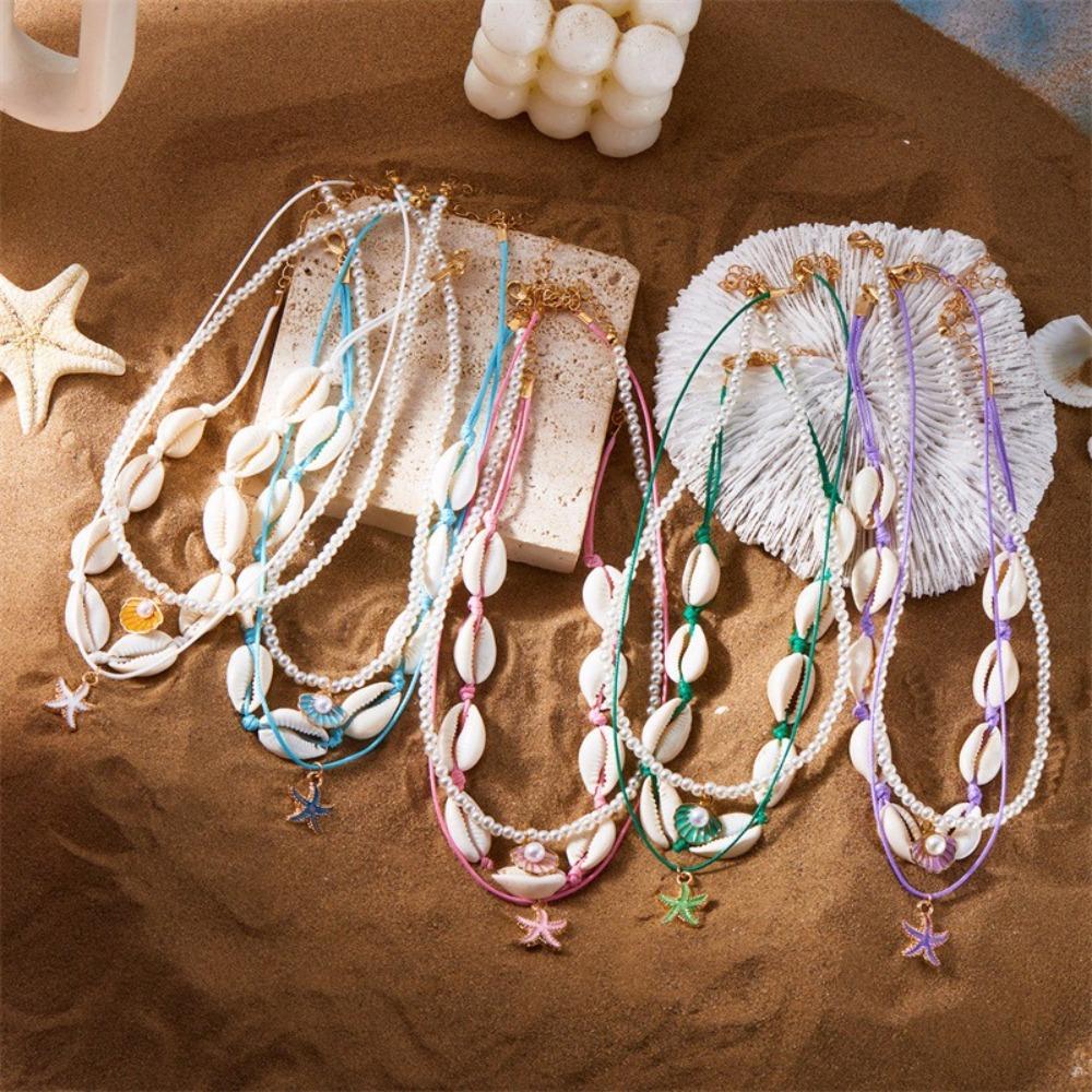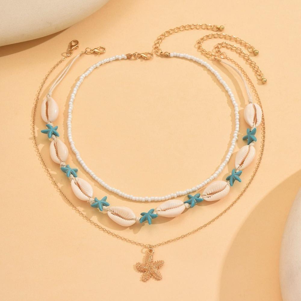 3 шт./компл. Многослойное ожерелье с подвеской в виде ракушки из морской звезды, бусины из ракушки, женское ожерелье