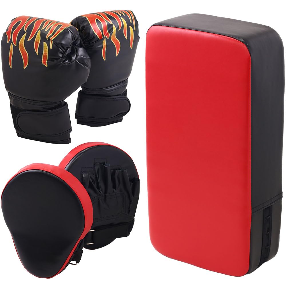 Комплект из 5 предметов, включающий пару 6-унциевых перчаток для левой и правой стороны, пару боксерских перчаток для левой и правой стороны и перчатку для ударов ногами.