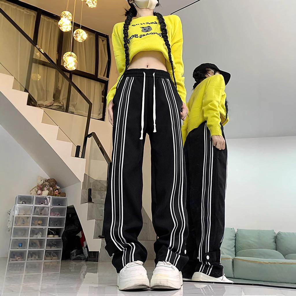 Брюки в черно-белую полоску для женщин на весну и осень. Прямые спортивные брюки с драпировкой. Свободные повседневные брюки с широкими штанинами.