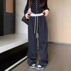 Женские повседневные брюки в стиле ретро с широкими штанинами на осень, свободные узкие прямые брюки серого цвета с высокой талией