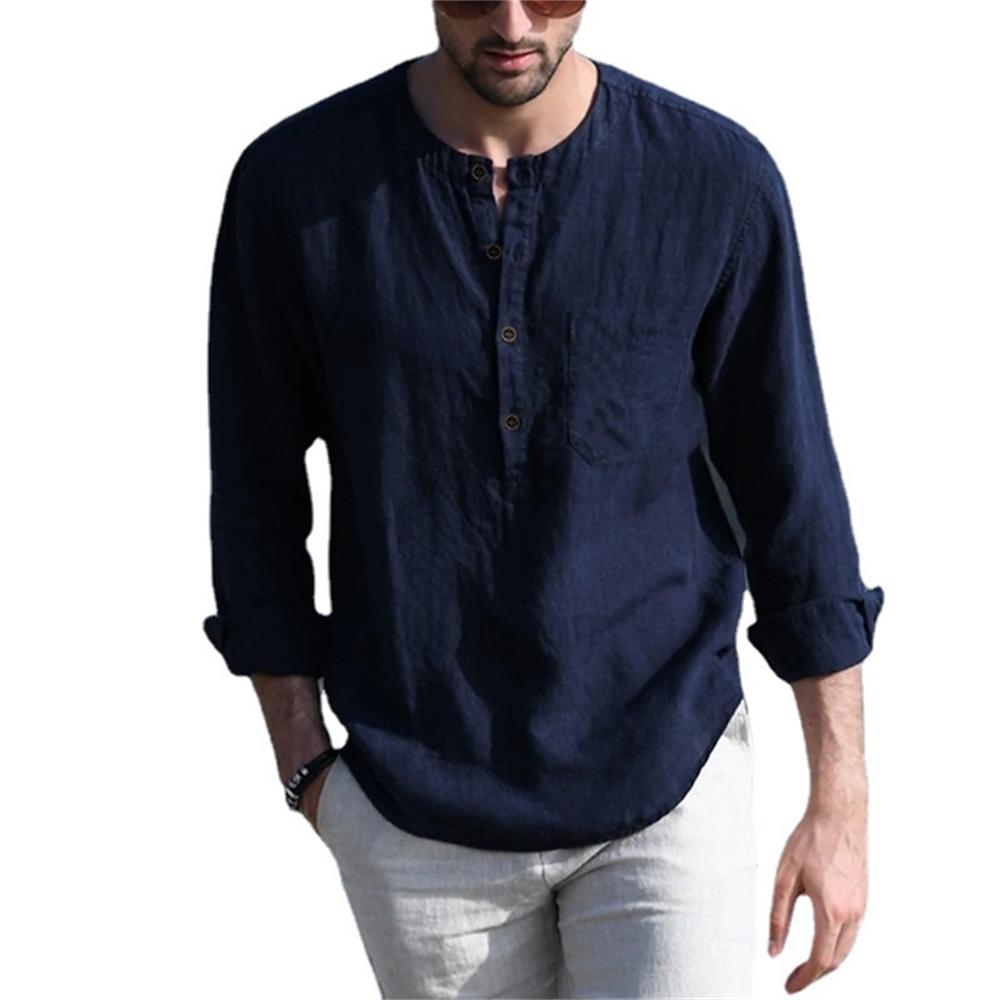Рубашки мужские из хлопковой линии с длинными рукавами, летние, однотонные, с воротником-стойкой, повседневные, пляжного стиля, больших размеров — купить товар онлайн с бесплатной доставкой по всему миру!