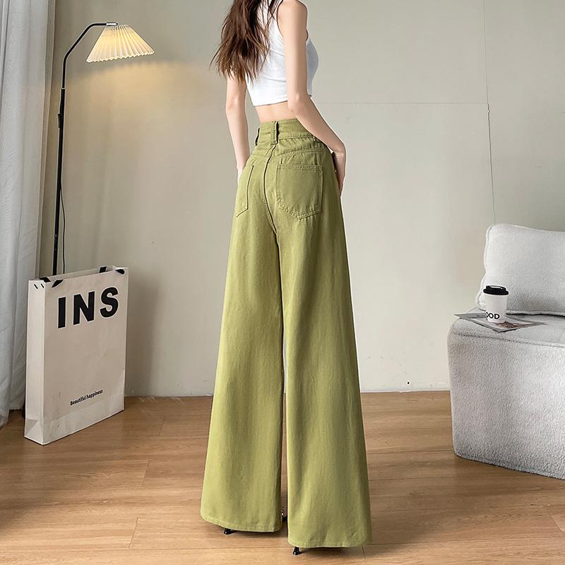 Весна-лето женские джинсы с высокой талией, широкие зеленые уличные прямые брюки, мешковатые повседневные винтажные женские джинсовые брюки