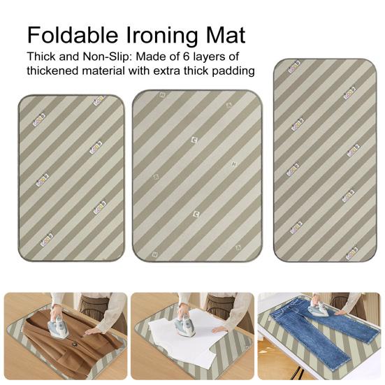 Премиальное качество строительства: Этот гладильный коврик, изготовленный из 6 слоев утолщенного материала с дополнительной подкладкой, устойчив к царапинам, водонепроницаем и термостойкий.. Защищает поверхности от ожогов, одновременно пропуская пар для эффективного процесса глажения.