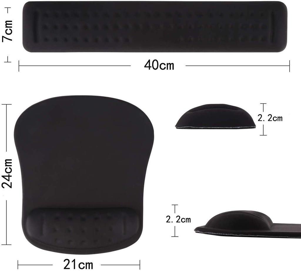 Подушка для запястья под руку: Размер подставки под запястье клавиатуры: 400x70x22 мм, размер коврика для мыши со встроенной подставкой для запястья: 210x240x22 мм, что соответствует размерам большинства мышей, клавиатур ПК, ноутбуков и т. д.